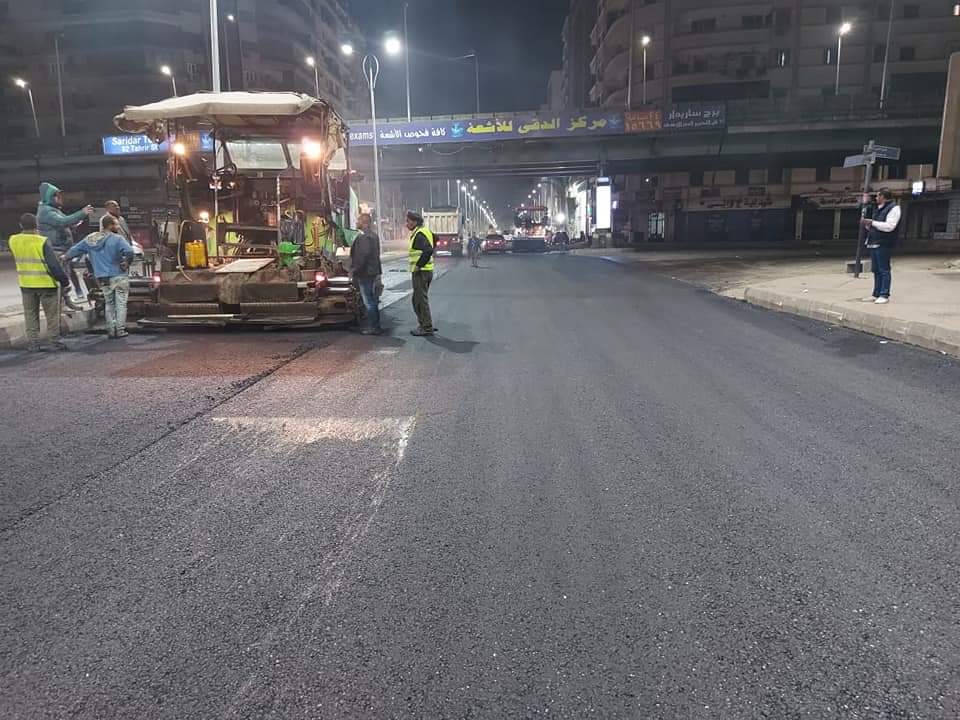 ويأتي ذلك في إطار توجيهات اللواء أحمد راشد محافظ الجيزة بمواصلة أعمال رصف وتطوير المحاور المرورية.