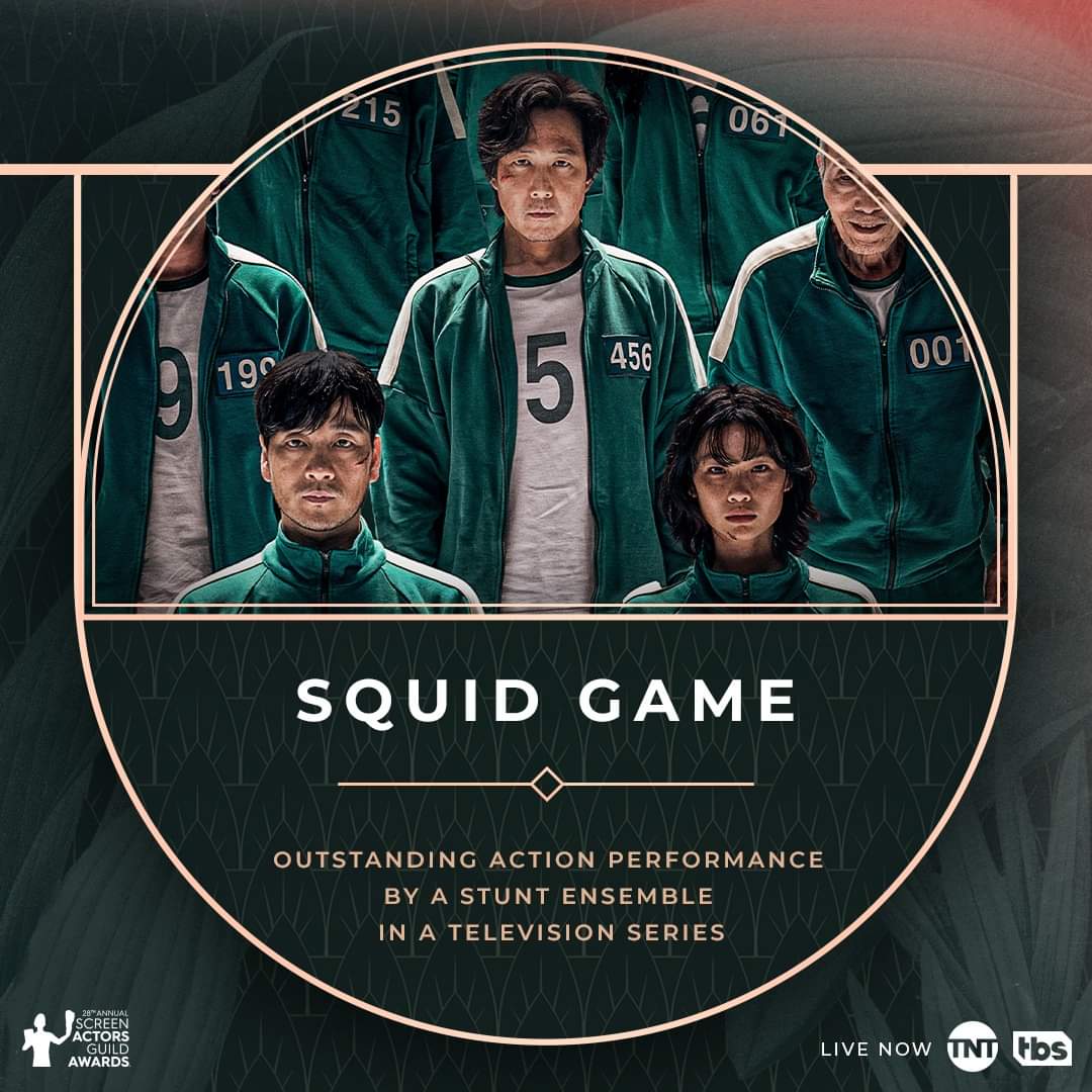 فيما دخل مسلسل Squid Game التاريخ باعتباره أول عمل درامي كوري يتم ترشيحه لجوائز الساج في فئات مختلفة منها أفضل مسلسل وأداء تمثيلي لأبطاله.