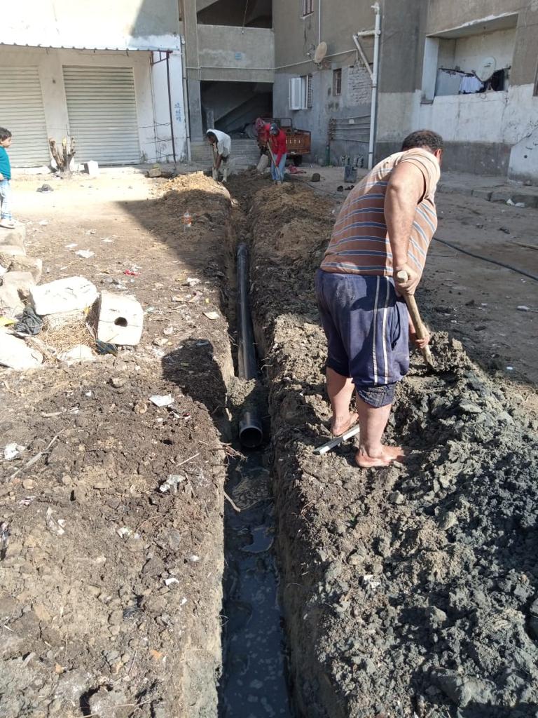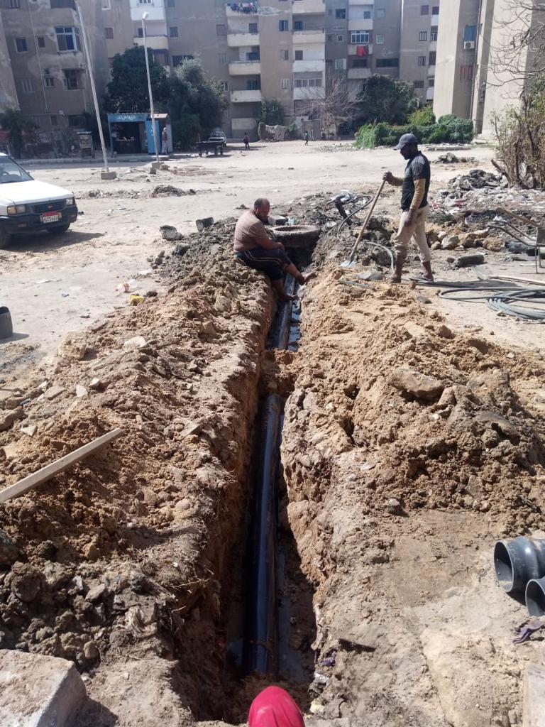 استمرار أعمال إصلاح غرف تفتيش الصرف الصحي بأحد شوارع سوق الجملة بمدينة المستقبل | صور