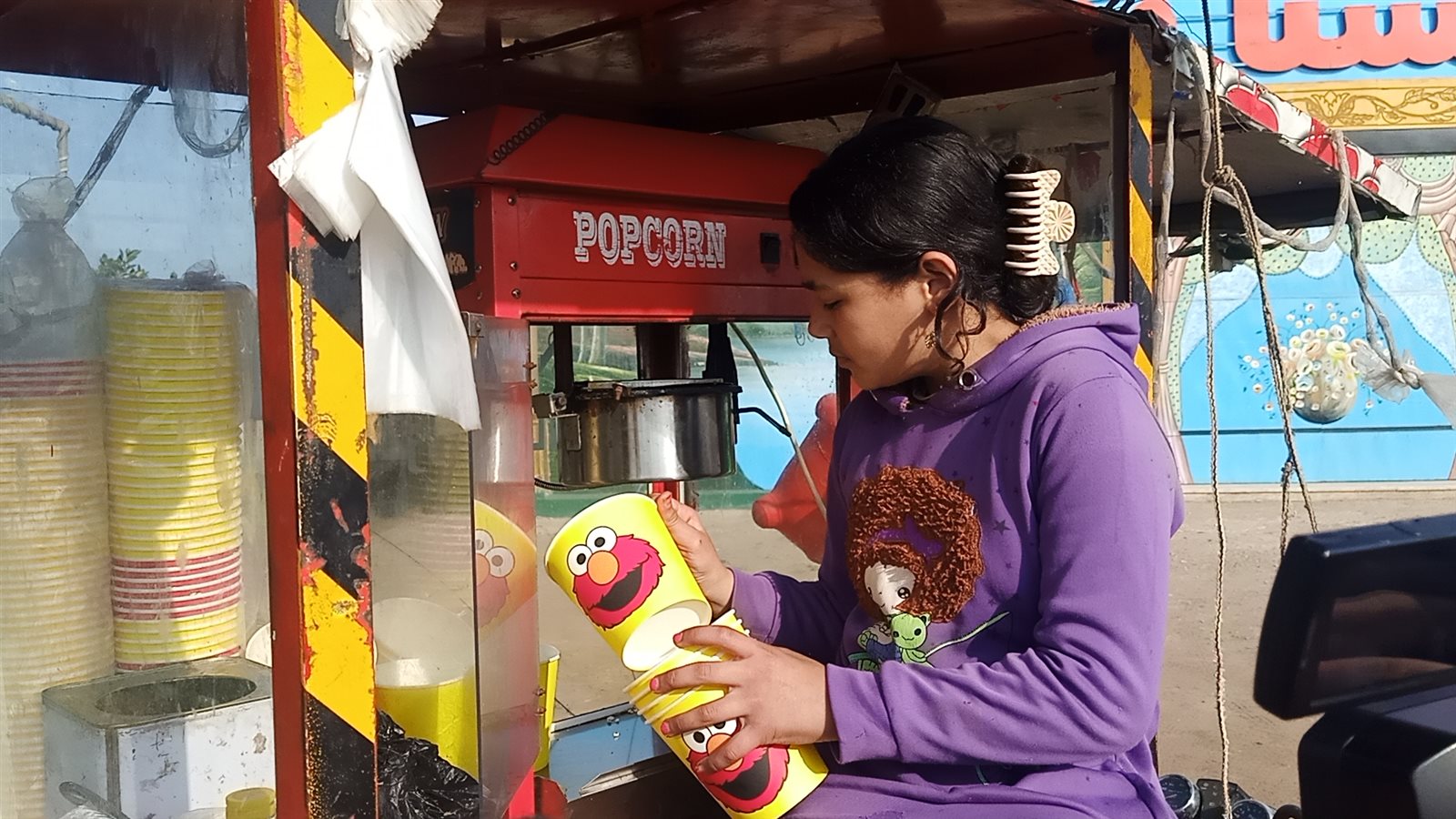 ورصدت" فيتو" رحلة بيع لفاطمة وطريقة تحضيرها للفشار بخلطة فاطمة السرية التي تعطي للفشار مذاق خاص لروادها.