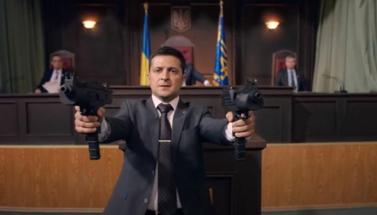 وقبل انتخابه، لعب زيلينسكي دور البطولة في مسلسل تلفزيوني بعنوان Servant Of the People، حيث لعب دورًا مدرس تاريخ أصبح رئيسا للبلاد وأطلق الوعود بنشر العدل والتخلص من الفساد.