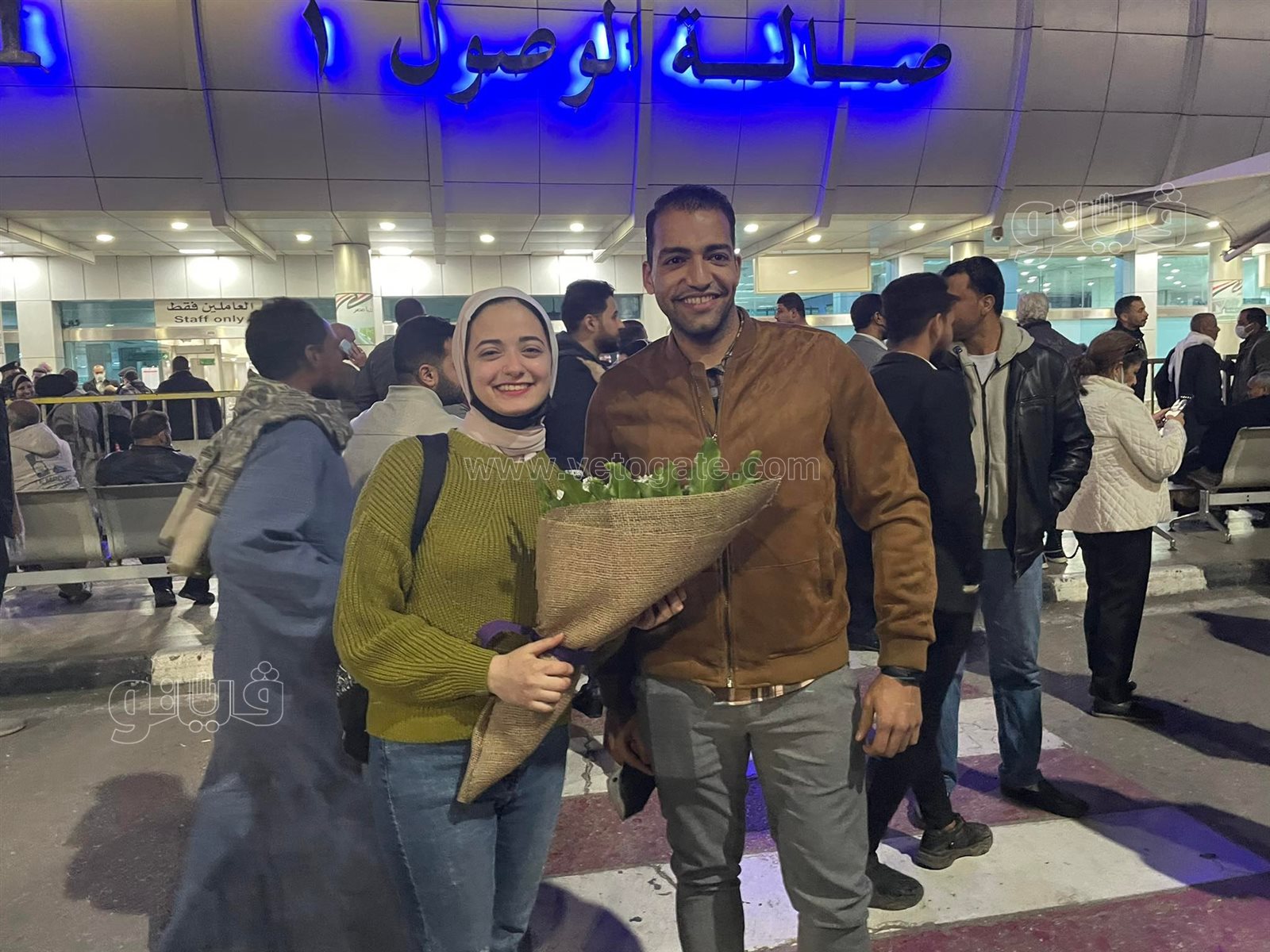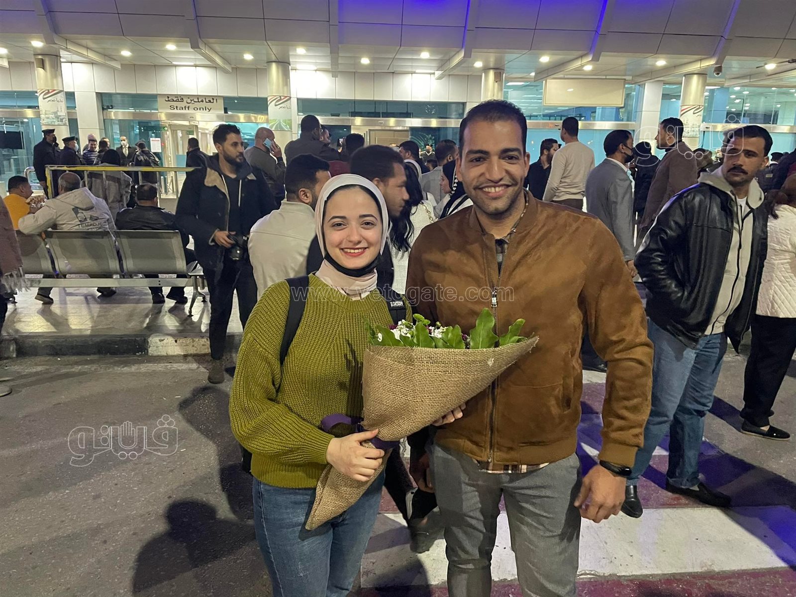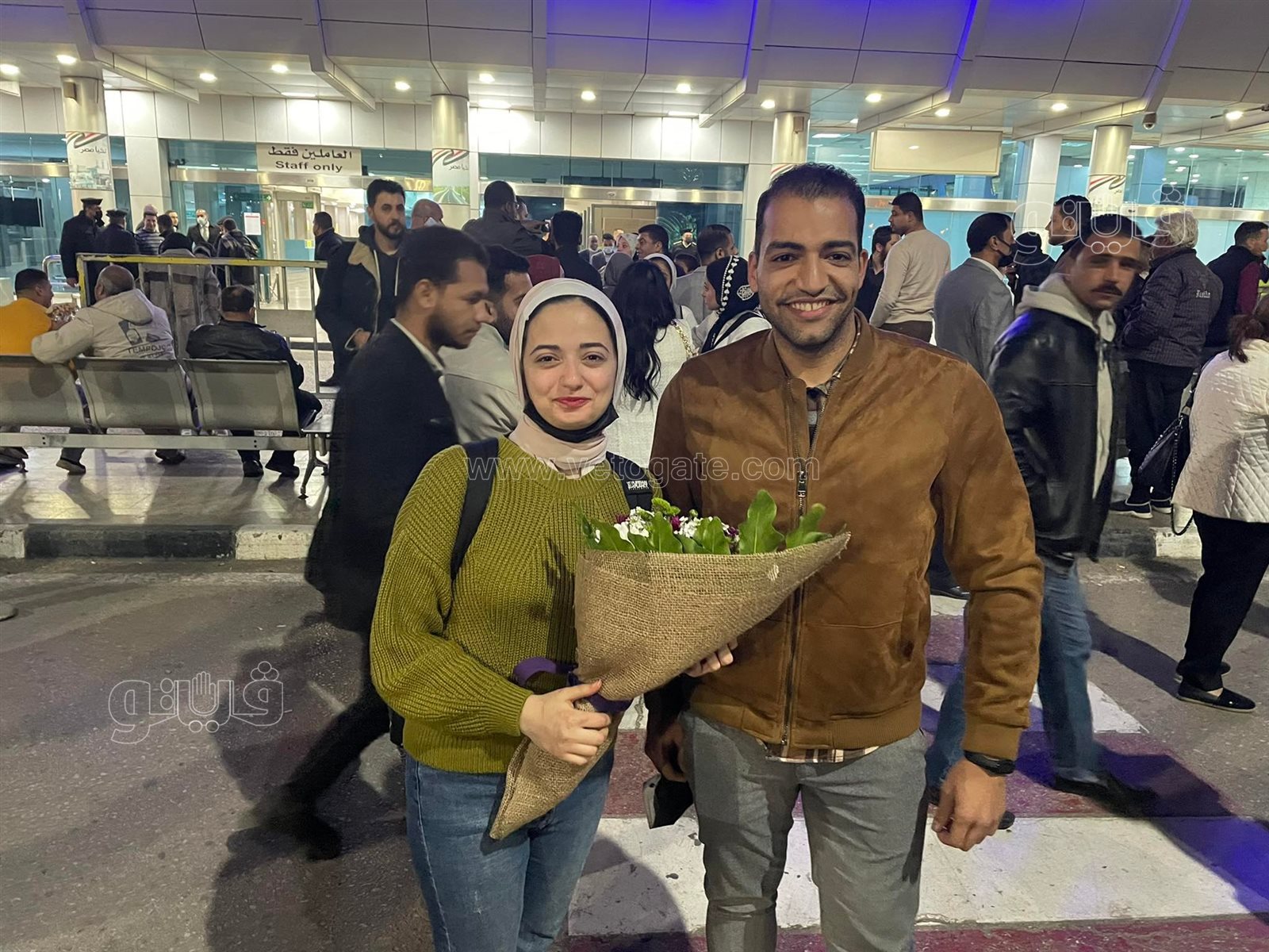 شاب مصري يفاجئ خطيبته العائدة من أوكرانيا بـ"بوكيه ورد" في مطار القاهرة | صور