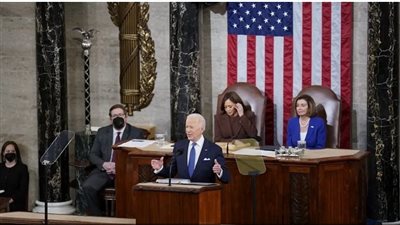 وأوضح خلال خطابه السنوي عن حال الاتحاد، أمام الكونجرس: " نحن بصدد فصل أكبر البنوك الروسية عن النظام المالي الدولي، ويجب تعزيز صناعة السيارات والرقائق الإلكترونية داخل الولايات المتحدة"، مؤكدا: " سنواصل مكافحة تغير المناخ والعمل على دعم الاقتصاد والوظائف".