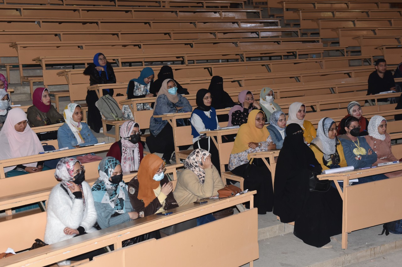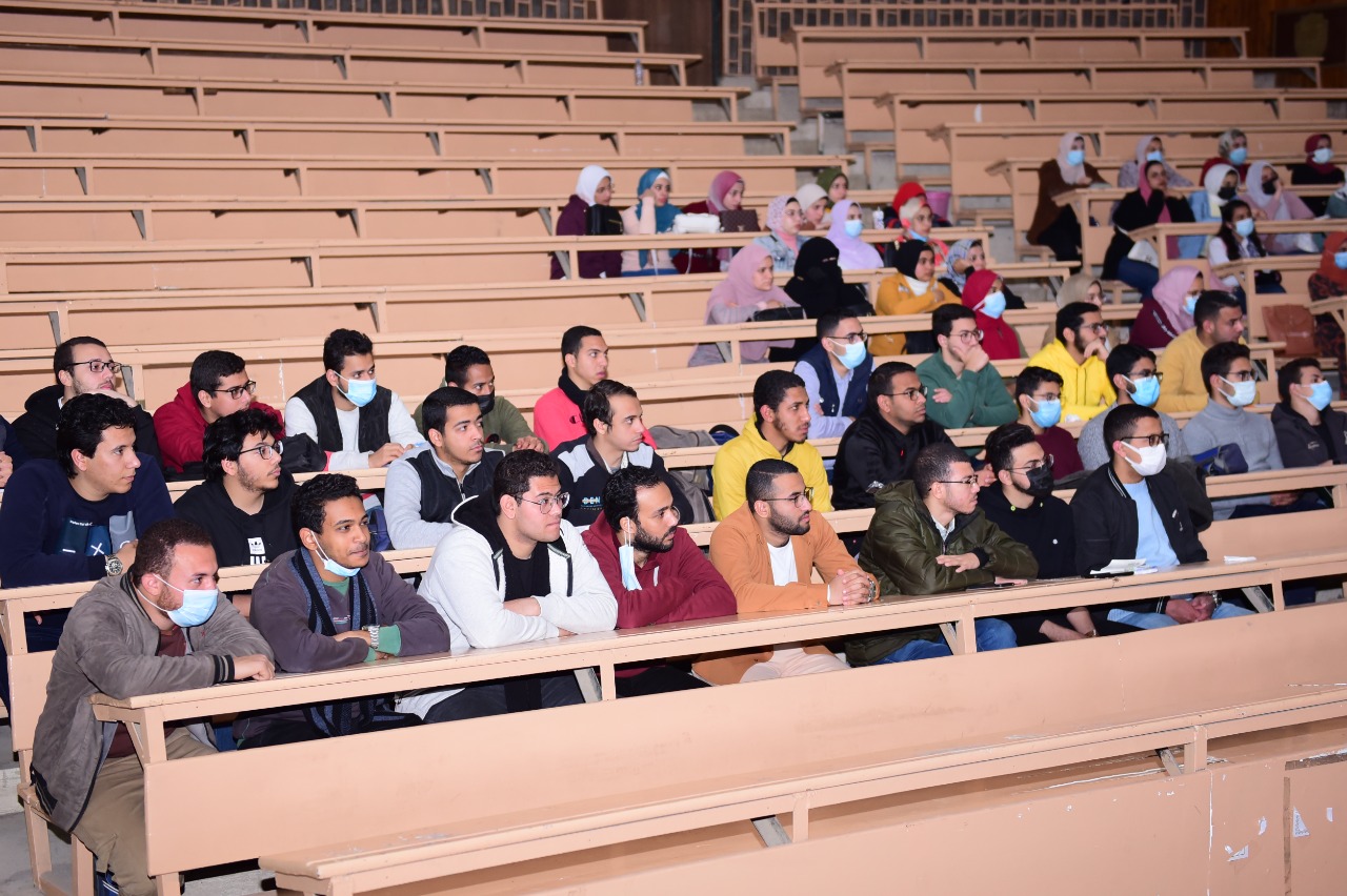 طلاب طب سوهاج يستقبلون رئيس الجامعة بالورود خلال إلقائه محاضرة