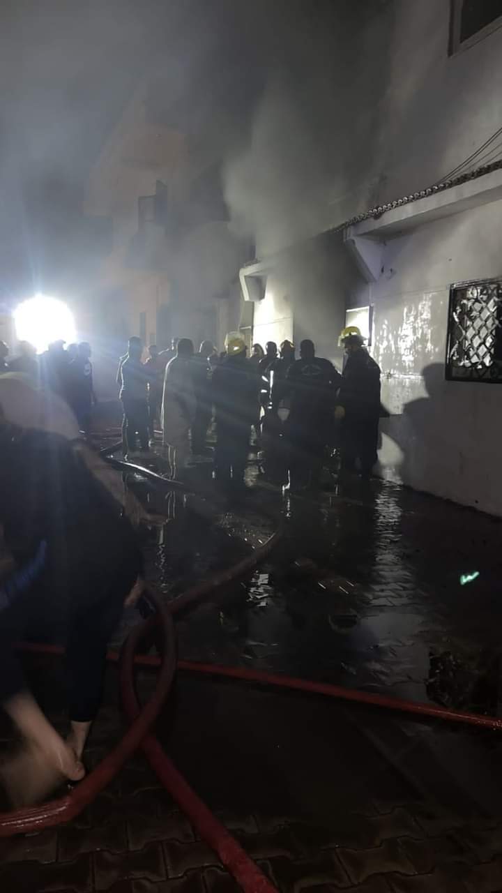 انتقلت قوات الحماية المدنية لمكان الحريق وتمكنت من السيطرة عليه بعد أن استمر أكثر من ساعتين مما تسبب في فزع السكان وإصابتهم بحالات اختناق.