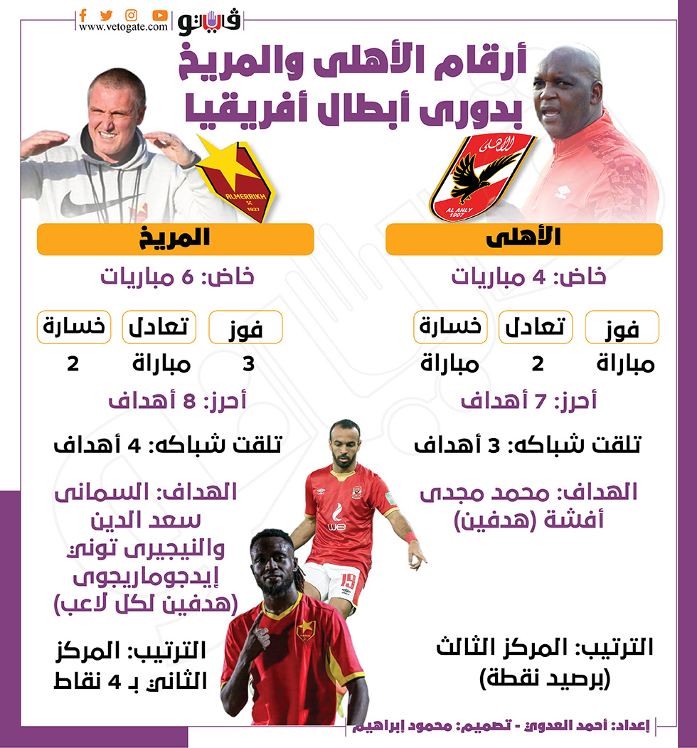 أرقام الأهلى والمريخ بدورى أبطال أفريقيا| انفوجراف السبت 05/مارس/2022 - 02:56 م 3/5/2022 2:56:07 PM الأهلى أمام المريخ السوداني أحمد العدوي شارك طباعة 18 حجم الخط شارك طباعة المريخ السوداني دوري أبطال أفريقيا اخبار الرياضة اخبار الأهلي الأهلي الاهلي اليوم