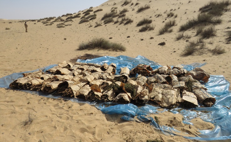 وأسفرت الجهود عن ضبط 15 قضية عبارة عن 15 مخزنا ضُبط بداخلهم كميات من مخدر البانجو الجاف بلغت 3250 كيلو جرام وتم اتخاذ الإجراءات القانونية وجاري العرض على النيابة العامة.