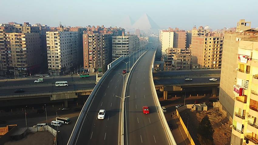 كوبري تقاطع طريق الأهرام بطول ٩٥٠ م وبعرض ٢١ م، بواقع ٣ حارات مرورية لكل اتجاه