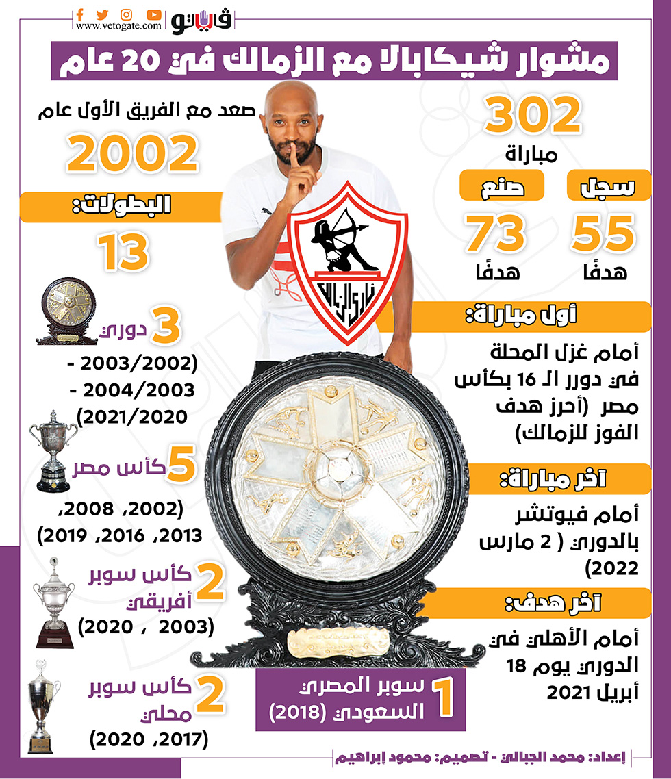 مشوار شيكابالا مع الزمالك في 20 عام | انفوجراف السبت 05/مارس/2022 - 01:25 م 3/5/2022 1:25:08 PM مشوار شيكابالا مع الزمالك محمد الجبالى شارك طباعة 18 حجم الخط شارك طباعة