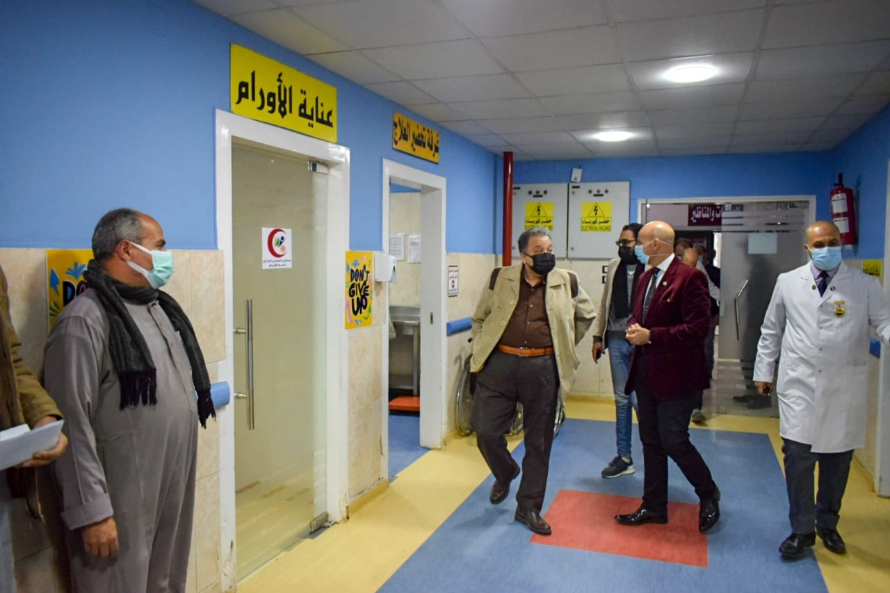 كما تفقد وكيل الوزارة الأعمال الجارية بمبني علاج الأورام الجديد، والذي يأتي ضمن خطة التطوير بالمستشفي، ومن المقرر زيادة القوة الاستيعابية إلي ٤٠ سرير لمرضي علاج الأورام "خارجي" وتقديم الخدمة لعدد ٤٠ مريض بالجلسة الواحدة بدلًا من ١٠ حاليًا، وتفقد أعمال رفع كفاءة قسم العمليات الجراحية بالمستشفى، وتطوير غرف العمليات الخمسة بكافة التجهيزات الطبية اللازمة، بما يتناسب مع معايير الجودة وسياسات مكافحة العدوى.