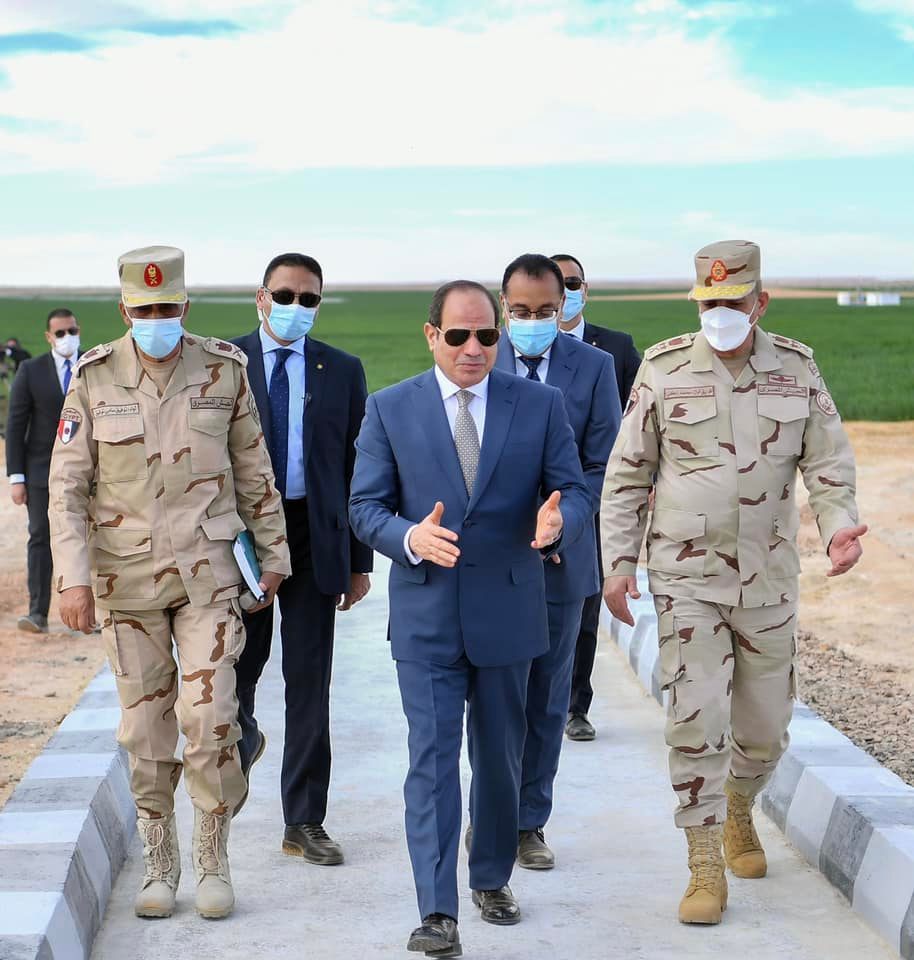 - وشهد الرئيس عبد الفتاح السيسي آخر ما تم إنجازه في المشروع من تطوير واستصلاح وزراعة أكثر من 2 مليون نخلة فضلا عن شق الترع وحفر الأبار لتوفير المياه اللازمة للزراعة لتأمين الأمن القومي الغذائي للمصريين باعتباره من أهم أولويات القيادة السياسية الحالية والمستقبلية، باستخدام أحدث أساليب الزراعة ووسائل الري في العالم في العديد من المشروعات القومية، وأبرزها مشروع المليوني فدان والذى يشمل مشروعات قومية عديدة منها توشكى وشرق العوينات والدلتا الجديدة ومستقبل مصر ومشروع استصلاح وزراعة الأراضي بشمال ووسط سيناء.