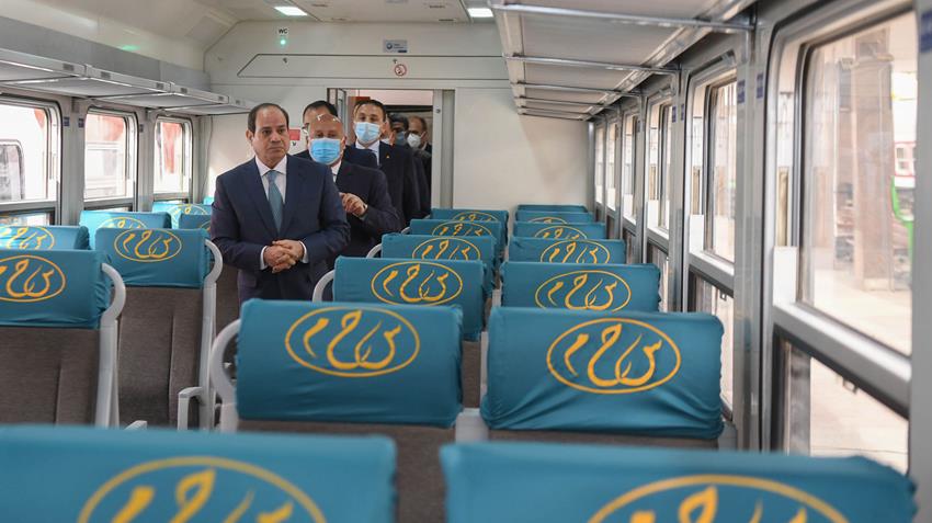 - وفي قطاع النقل والمواصلات والسكك الحديدية، اطلع الرئيس السيسي على جهود تطوير السكك الحديدية، حيث تم تخصيص 225 مليار جنيه لمشروعات السكك الحديدة خلال الفترة من 2014 وحتى 2024، كما قام الرئيس السيسي بجولة تفقدية في محطة السكك الحديدية في مدينة أسوان.