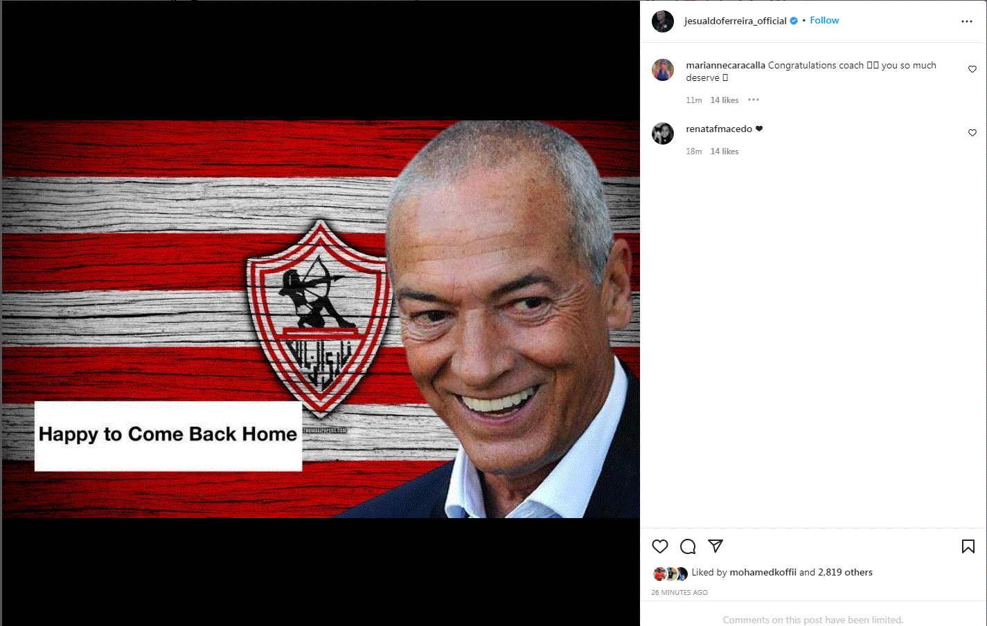 وكتب فيريرا عبر حسابه على إنستجرام: “ سعيد بالعودة لبيتي”.