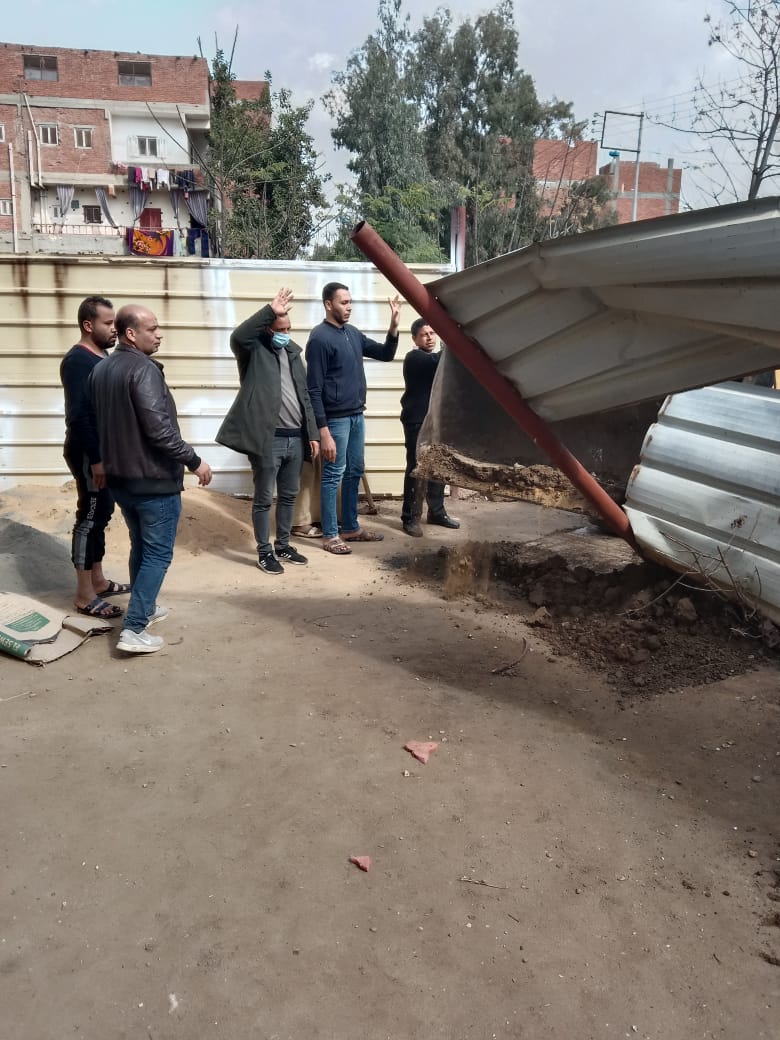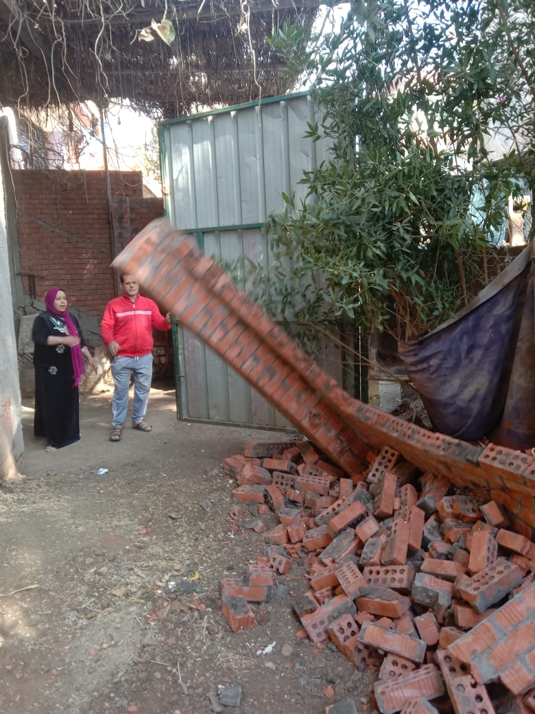 كما تم رصد أحد المواطنين أثناء قيامه ببناء سور من الطوب الأحمر بطول ٩م وارتفاع ٢م بقرية كفر الحاج داود التابعة للوحدة المحلية بالجعفرية بحوض العرقوب، وتمت الإزالة الكلية في المهد وتحرير المحضر.