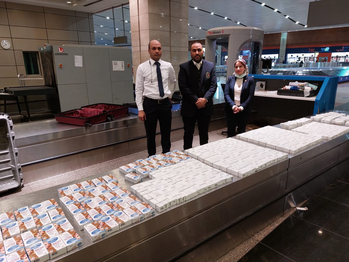 إحباط محاولة تهريب مستحضرات تجميل باهظة الثمن بمطار القاهرة | صور