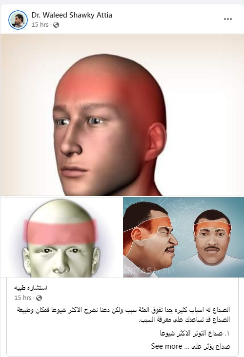 وكتب الدكتور وليد شوقى تدوينة على الفيس بوك "الصداع له اسباب كثيره جدا تفوق المئة سبب ولكن دعنا نشرح الاكثر شيوعا فمكان وطبيعة الصداع قد تساعدك على معرفة السبب. ١. صداع التوتر الاكثر شيوعا صداع يؤثر على رأسك بالكامل يمكن أن يشعر الصداع الكامل بوجود رباط ضيق حول رأسك. يشير هذا غالبًا إلى صداع التوتر، وهو أكثر اضطرابات الصداع الأولية شيوعًا"