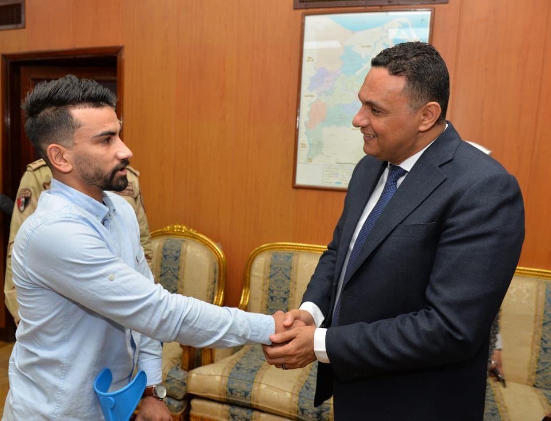 احتفالًا بذكرى يوم الشهيد.. محافظ الدقهلية يكرم أحد مصابي العمليات الحربية في سيناء