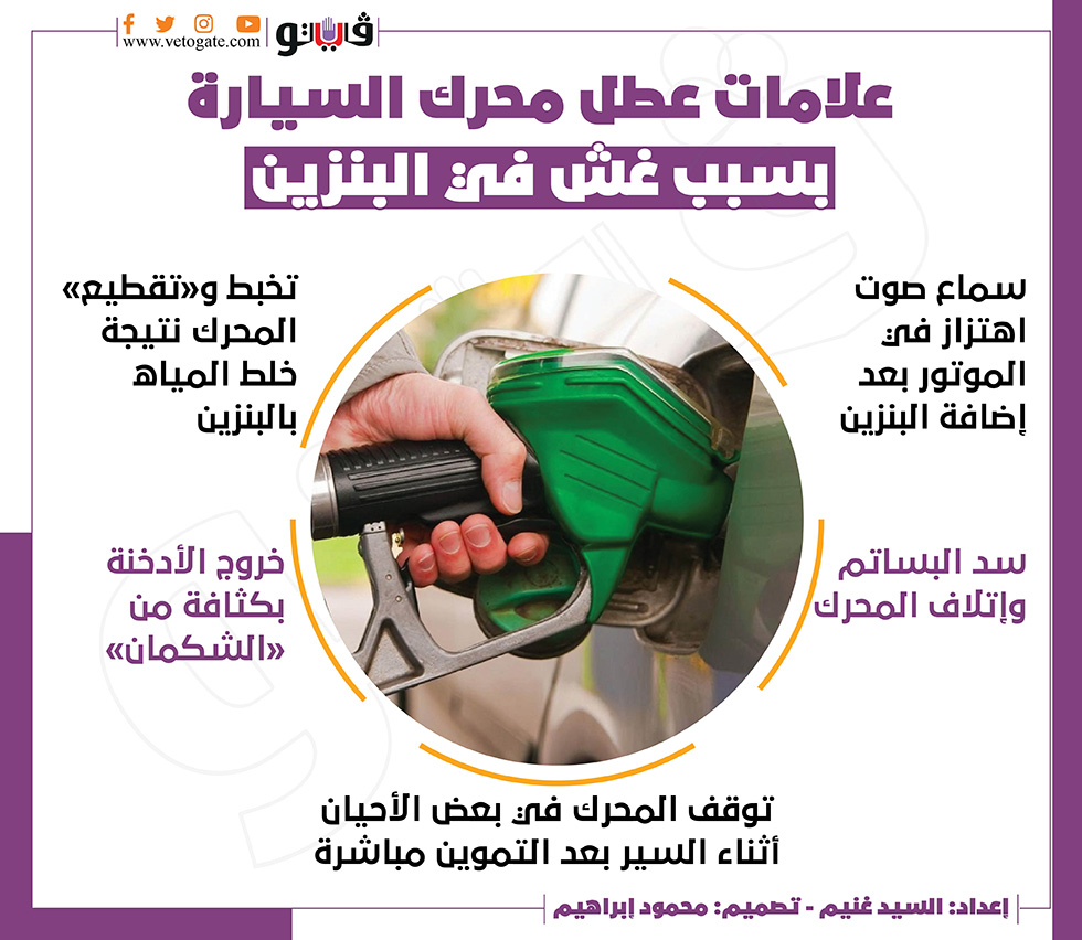 علامات عطل محرك السيارة بسبب غش في البنزين | إنفوجراف الإثنين 07/مارس/2022 - 07:33 م 3/7/2022 7:33:48 PM عملية تموين سيارة - صورة أرشيفية السيد غنيم شارك طباعة 18 حجم الخط شارك طباعة البنزين علامات غش البنزين غش البنزين