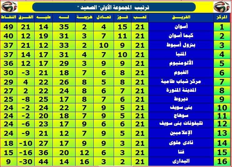 كما حقق بترول أسيوط الفوز على البداري 6-1، وطامية على قنا 2-0، وتعادل الألومنيوم مع كيما أسوان 1-1، والفيوم مع الإعلاميين 0-0، وملوي مع المنيا 1-1، بالجولة ال21 لمجموعة الصعيد.