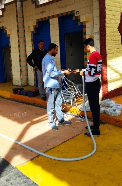 كما قامت إدارة الإنارة بتركيب أعمدة وشبكة كابلات وصب قواعد خرسانية بشارع السكه الحديد بجوار المجمع.