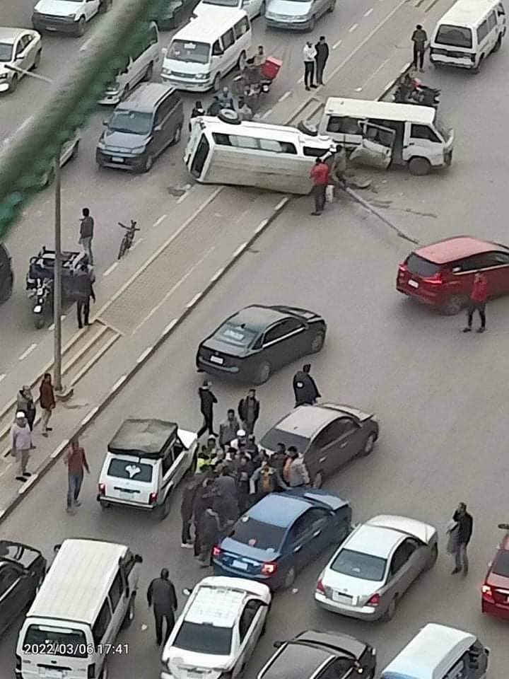 وبالفحص تبين وقوع انقلاب سيارة ميكروباص، عقب اصطدامه بآخرى مما أسفر عن إصابة سائق بكدمات متفرقة بجسده وتم نقل المصاب إلى المستشفى لتلقي العلاج اللازم.