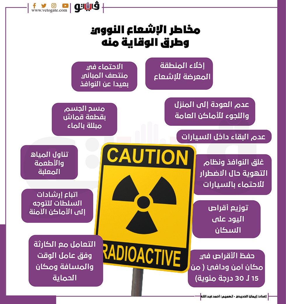 مخاطر الإشعاع النووي وطرق الوقاية منه|انفوجراف الثلاثاء 08/مارس/2022 - 04:23 م 3/8/2022 4:23:13 PM مخاطر الاشعاع النووي إيمان الحديدى شارك طباعة 18 حجم الخط شارك طباعة فرنسا أوكرانيا الإصابة بالسرطان الحمض النووي الجيش الروسي الاشعاع النووي محطات الطاقة النووية
