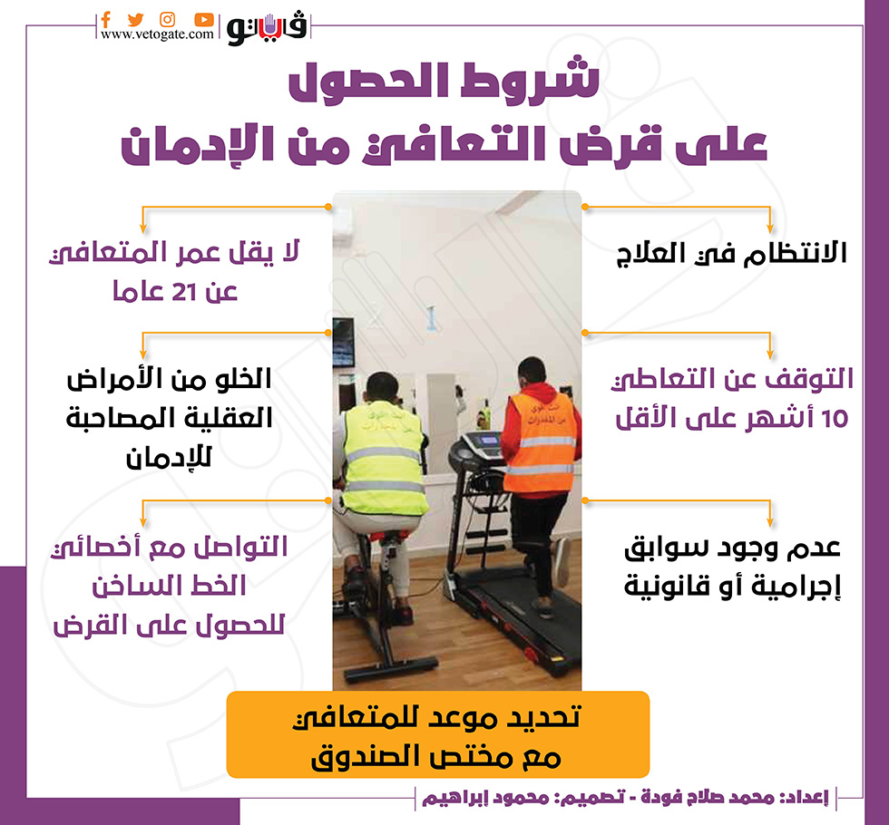 شروط الحصول على قرض التعافي من الإدمان | إنفوجراف الثلاثاء 08/مارس/2022 - 08:00 م 3/8/2022 8:00:36 PM صندوق مكافحة وعلاج الإدمان محمدصلاح فودة شارك طباعة 18 حجم الخط شارك طباعة التعافى من الادمان الحملة القومية لمكافحة الإدمان برنامج علاج الادمان صندوق مكافحة الإدمان المؤتمر الأول لمكافحة الادمان
