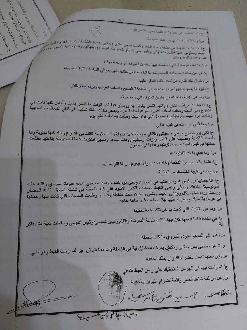 وأضاف المتهم بقتل شهد، لقيت في الشنطه كتب واقلام، وكيس شيبسي، وكيس اندومي وحاجات تانية مش فاكرهم بالظبط وبعدين حطيتهك في الجردل وحرقت حاجه حاجه وخلصت شغلي ورجعت البيت واتعاملت عادي، و الحكومة كانت بتسال علشان توصل للحقيقة ولما بعتولي رحت وإعترفت بكل حاجه واخدتهم مكان ما حرقت الشنطه بتاعتها.