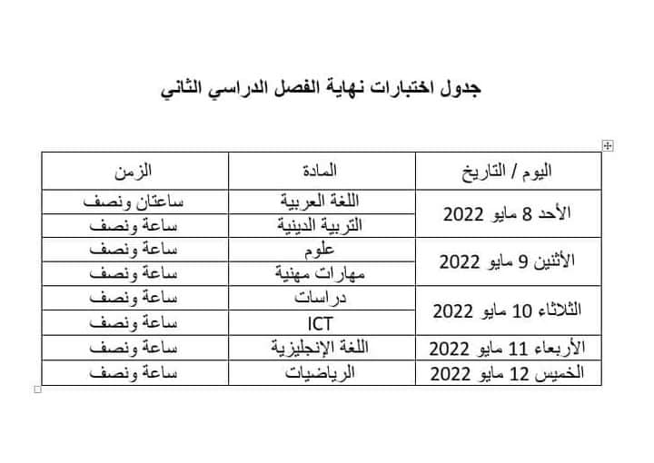 ولفت المدير العام لإدارة منشأة أبوعمر التعليمية أن امتحان نهاية الفصل الدراسي الثاني، سيعقد في الفترة من 8 إلى 12 مايو 2022، وتقتصر الأسئلة على خطة توزيع المنهج المقرر للفصل الدراسي الثاني.