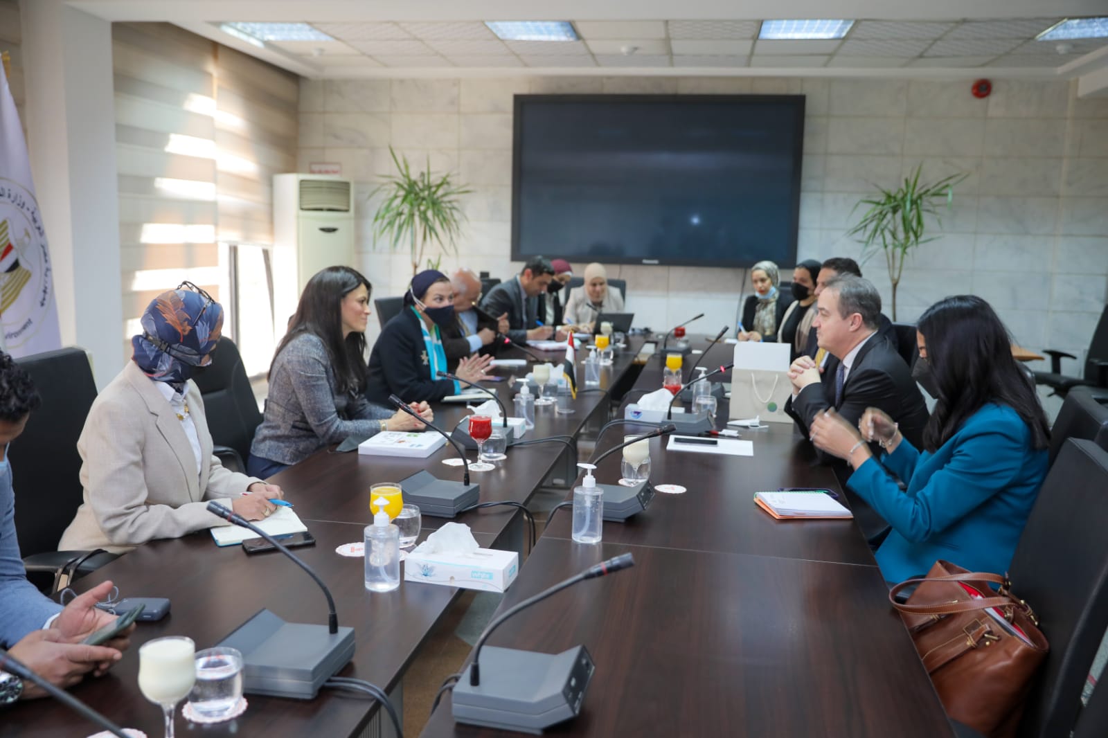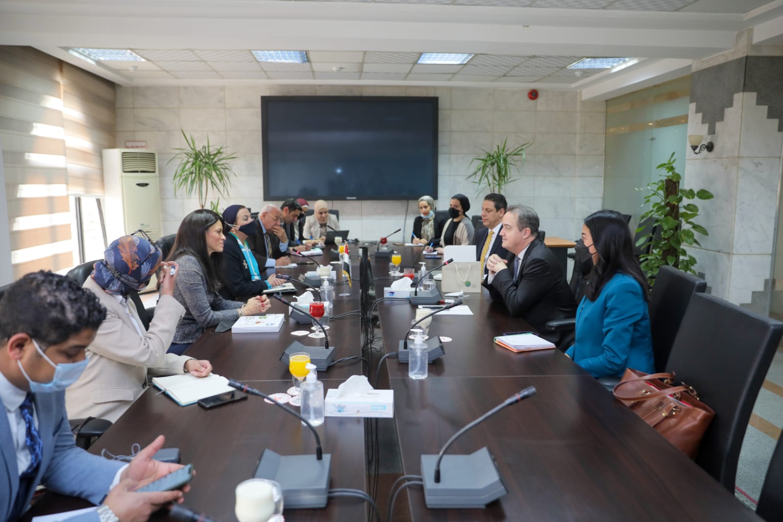 عقدت الدكتورة ياسمين فؤاد وزيرة البيئة والدكتورة رانيا المشاط وزيرة التعاون الدولى اجتماعًا موسعًا مع يانيك جليماريك المدير التنفيذي لصندوق المناخ الأخضر لمناقشة الموضوعات الخاصة بالمشروعات التى سيقوم بتمويلها صندوق المناخ الأخضر سواء فى مجالات التكيف أو التخفيف لدعم مصر لمواجهة التغيرات المناخية وذلك فى إطار زيارة يانيك لمصر التى تتضمن عقد عدد من الإجتماعات لدعم التعاون بين الدولة المصرية والصندوق، استعدادًا لإستضافة مصر مؤتمر الأطراف للتغيرات المناخية COP27.