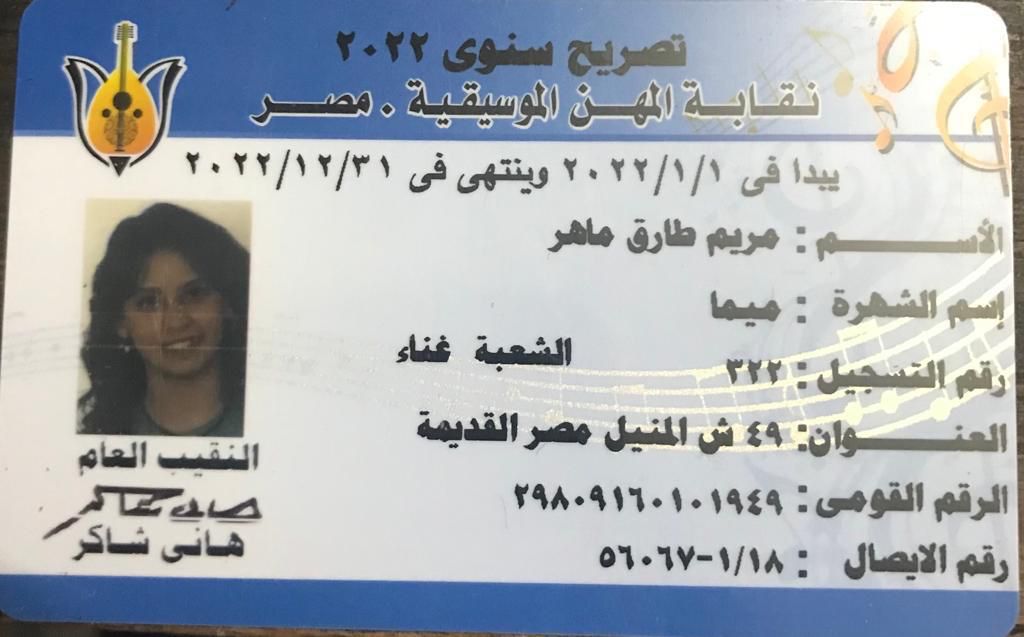 فى اليوم العالمى للمرأة وجهت الدكتورة إيناس عبد الدايم وزيرة الثقافة التهنئة للفنانة مريم طارق ماهر أول حاصلة على عضوية نقابة المهن الموسيقية من فصول ذوى القدرات الخاصة بمواهب الأوبرا وذلك بعد اجتيازها الاختبارات اللازمة للالتحاق بالنقابة بنجاح.