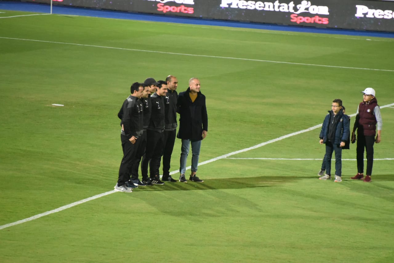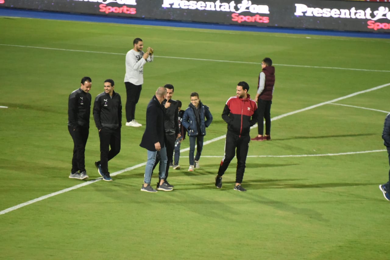 طاقم تحكيم مباراة الأهلي وبيراميدز يعاين ملعب أرضية ملعب السلام| صور