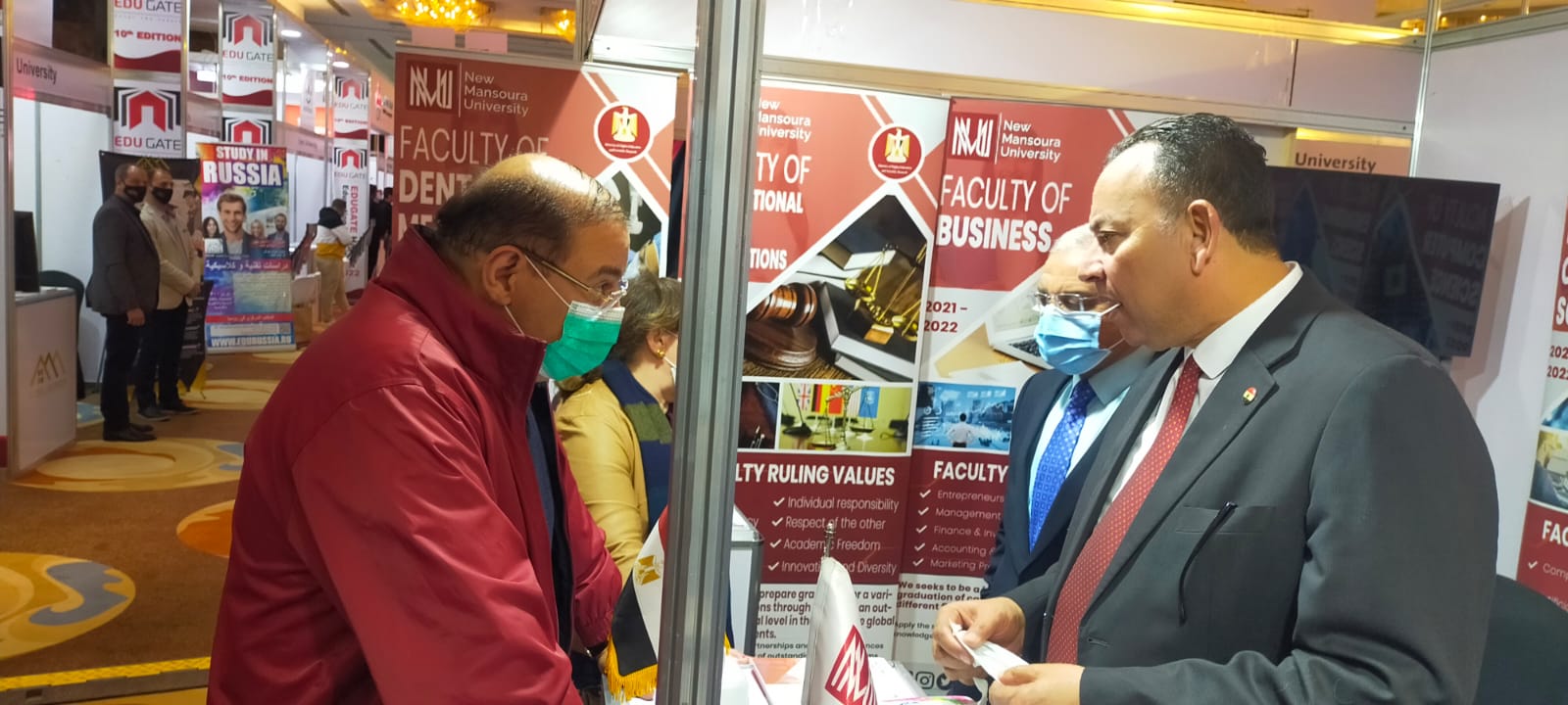 تفقد اليوم الدكتور خالد عبد الغفار وزير التعليم العالي والبحث بحضور الدكتور معوض الخولي رئيس جامعة المنصورة الجديدة خلال افتتاح فعاليات الملتقى التاسع لمعرض الجامعات المصرية والعالمية «إيديوجيت 2022»، خلال الفترة من 8 إلى 10 مارس الجاري.