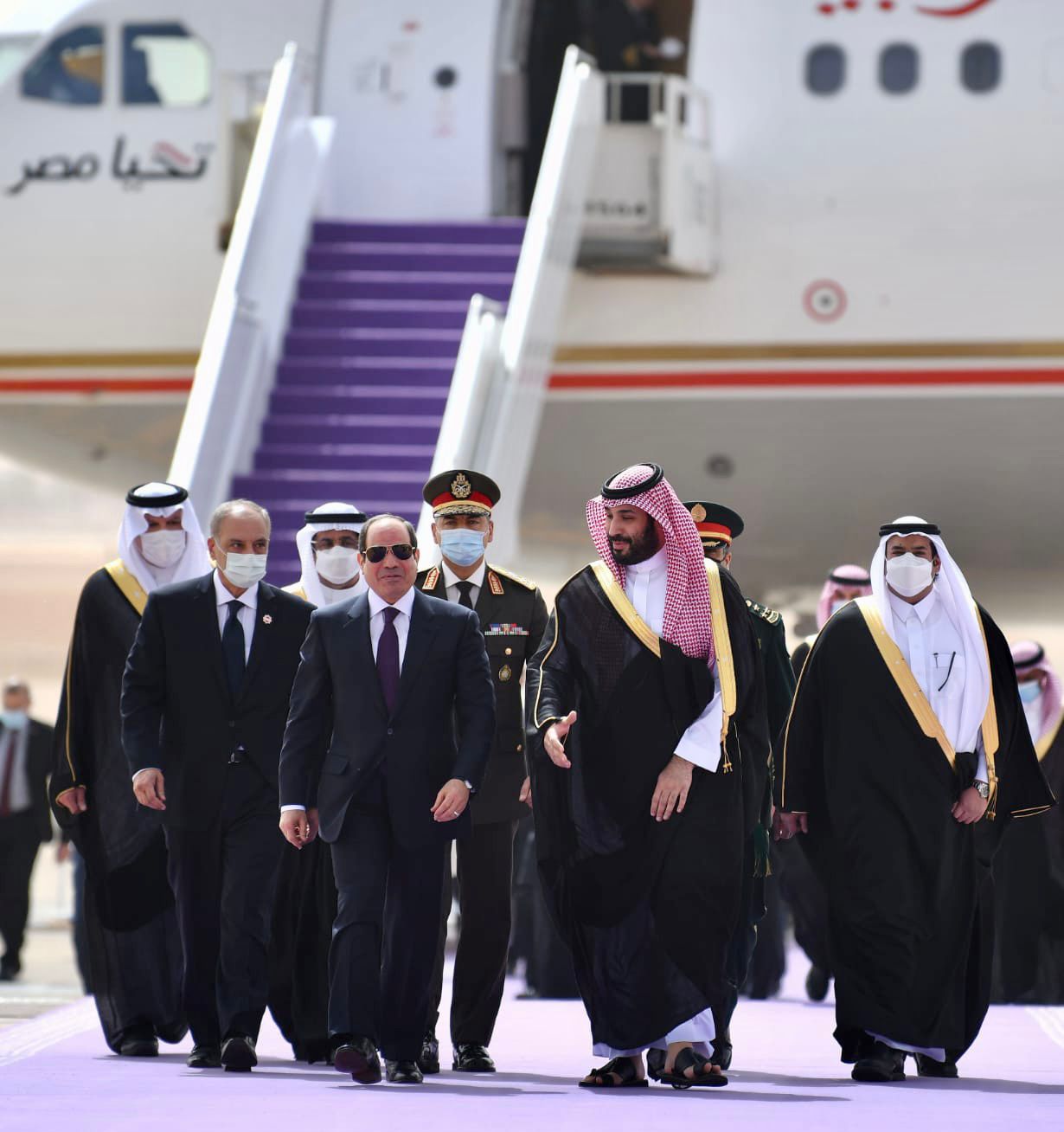 ومن جانبه، أعرب الرئيس عن سعادته بزيارة المملكة العربية السعودية الشقيقة، مؤكدًا اعتزاز مصر بالروابط التاريخية التي تجمع بين البلدين والشعبين الشقيقين، وتقدير مصر على المستويين الرسمي والشعبي لمواقف السعودية الداعمة لإرادة الشعب المصري وجهوده التنموية.