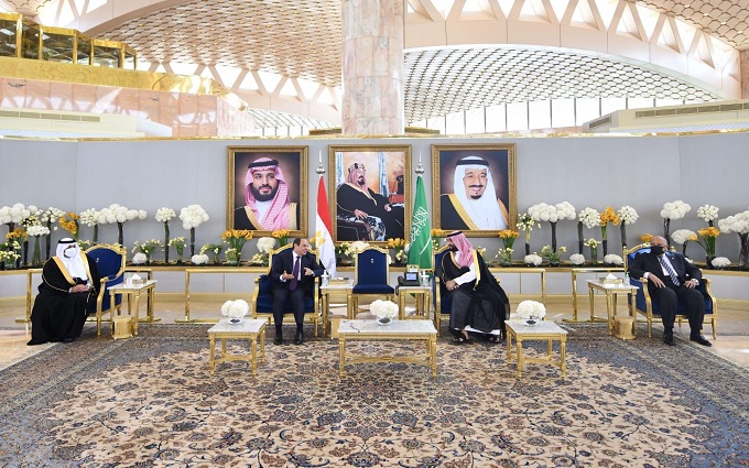 وقال السفير بسام راضي المتحدث الرسمى باسم رئاسة الجمهورية بأن الأمير محمد بن سلمان رحب في مستهل المباحثات بزيارة الرئيس، معربًا عن تقدير السعودية لمصر قيادة وشعبًا، ومشيدًا بما تتسم به العلاقات المصرية السعودية من أخوة صادقة وعلاقات تاريخية وثيقة.