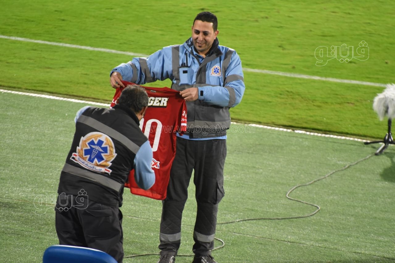 محمد شريف يهدي قميصه لأحد رجال الإسعاف عقب مباراة الأهلي وبيراميدز | صور