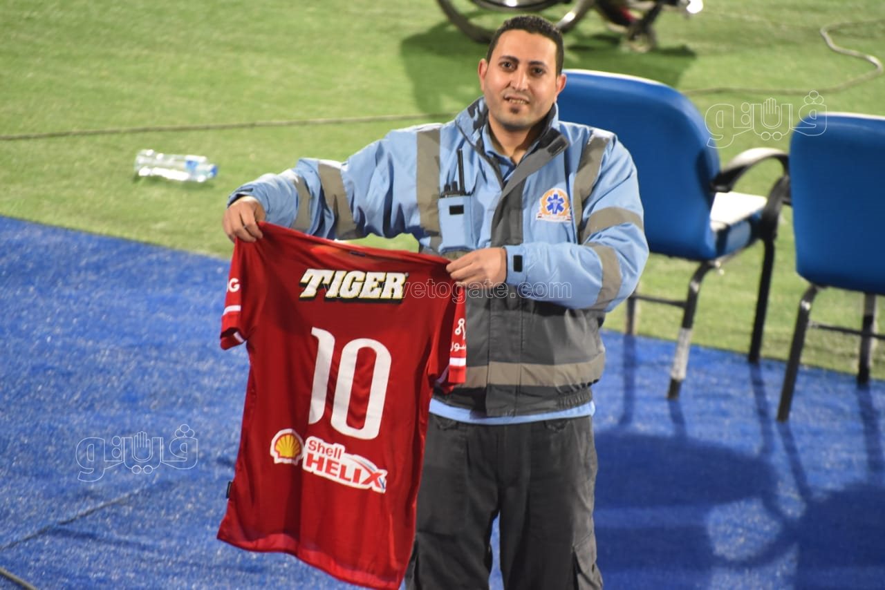 أهدى محمد شريف نجم فريق الكرة الأول بالنادي الأهلي والذي أحرز هدف في مباراة اليوم أمام بيراميدز قميصه عقب المباراة لأحد رجال الإسعاف.