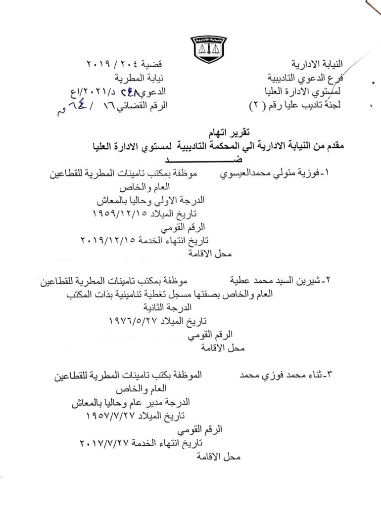 أكد تقرير الاتهام في القضية رقم 16 لسنة 64 قضائية عليا أن المحالين الأربعة خلال أعوام 2015 و2016 و2017، بوصفهم الوظيفي وبمقر عملهم داخل محافظة الدقهلية خالفوا القواعد والتعليمات وارتكبوا ما من شأنه المساس بحق من حقوق الدولة المالية.