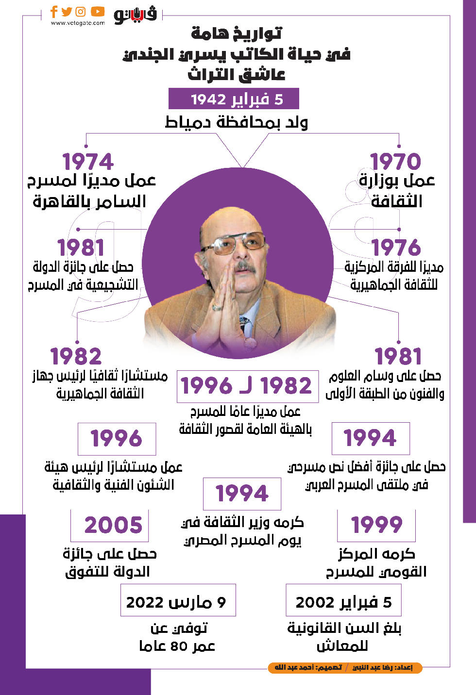تواريخ هامة في حياة الكاتب يسري الجندي عاشق التراث | انفوجراف الأربعاء 09/مارس/2022 - 05:32 م 3/9/2022 5:32:13 PM تواريخ هامة في حياة الكاتب يسري الجندي رضا عبدالنبى شارك طباعة 18 حجم الخط شارك طباعة
