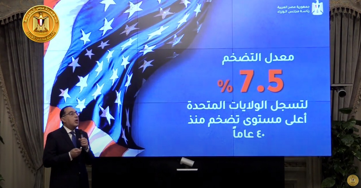 قال الدكتور مصطفى مدبولي رئيس الوزراء إن الولايات المتحدة الأمريكية سجلت معدل تضخم بمقدار 7.5% مشيرا إلى أن أمريكا بهذا الرقم تسجل أعلى مستوى تضخم منذ 40 عامًا.