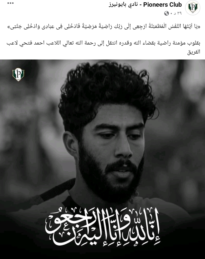 وفاة أحمد فتحي لاعب بايونيرز بالقسم الثاني