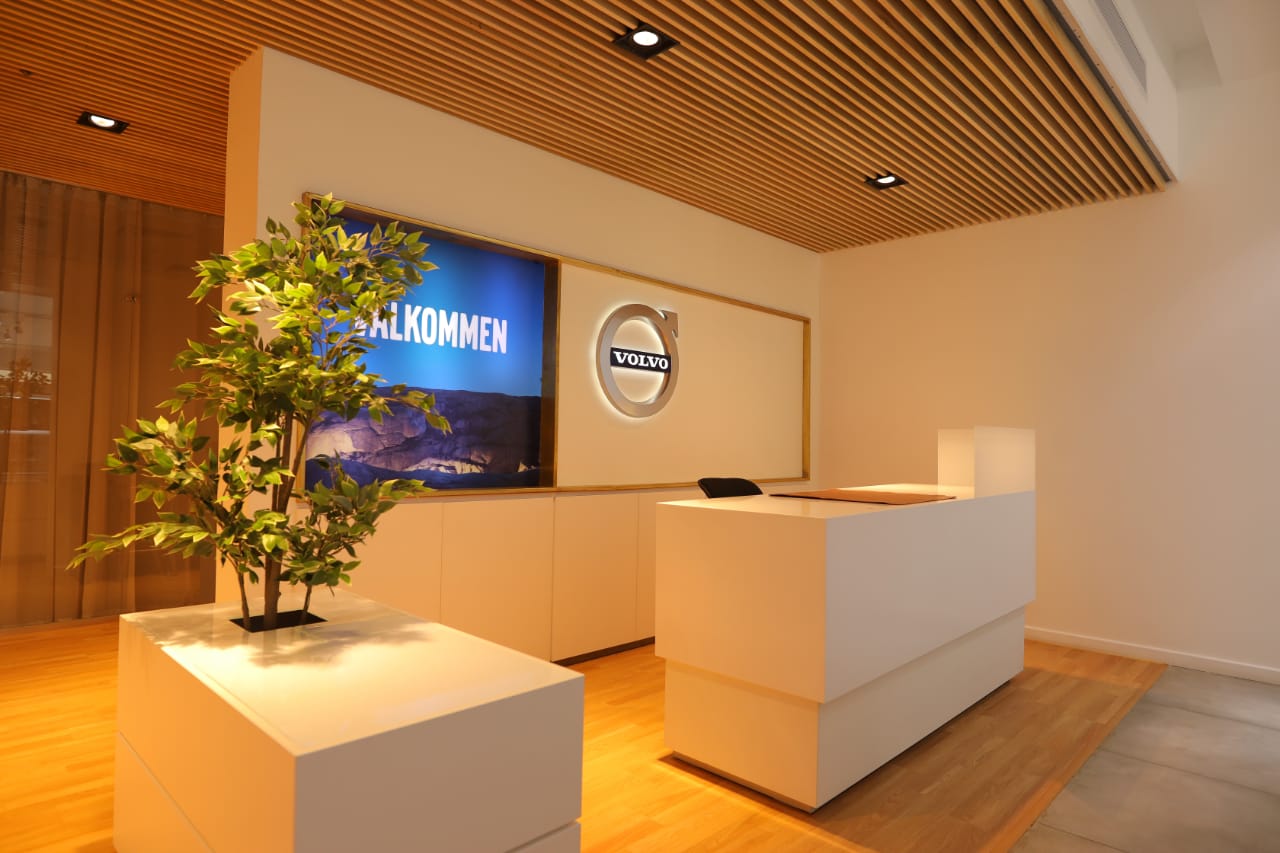 تم تصميم الصالة الجديدة بطراز يتماشى مع مفهوم صالات عرض فولفو العالمية "VRE"، إذ تم تصميمها على مساحة 200 متر مربع بواجهة فريدة تشبه متاجر وسط المدينة السويدية لتستوعب عرض 3 سيارات مختلفة، بالإضافة إلى تأثيثها بأثاث مستدام تم استيراده بالكامل من السويد.