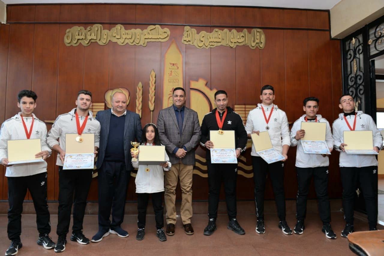 حيث كرم " المحافظ " الكابتن نصر ابراهيم سالم مدرب الفريق والحاصل علي المركز الاول علي مستوي العالم حيث حصل علي عدد 2 ميدالية ذهبية و ميدالية فضية.