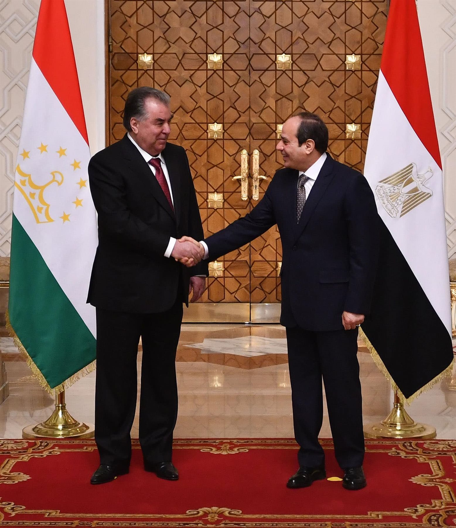 استقبل الرئيس عبد الفتاح السيسي اليوم بمقر رئاسة الجمهورية بمصر الجديدة رئيس جمهورية طاجيكستان إمام علي رحمان.