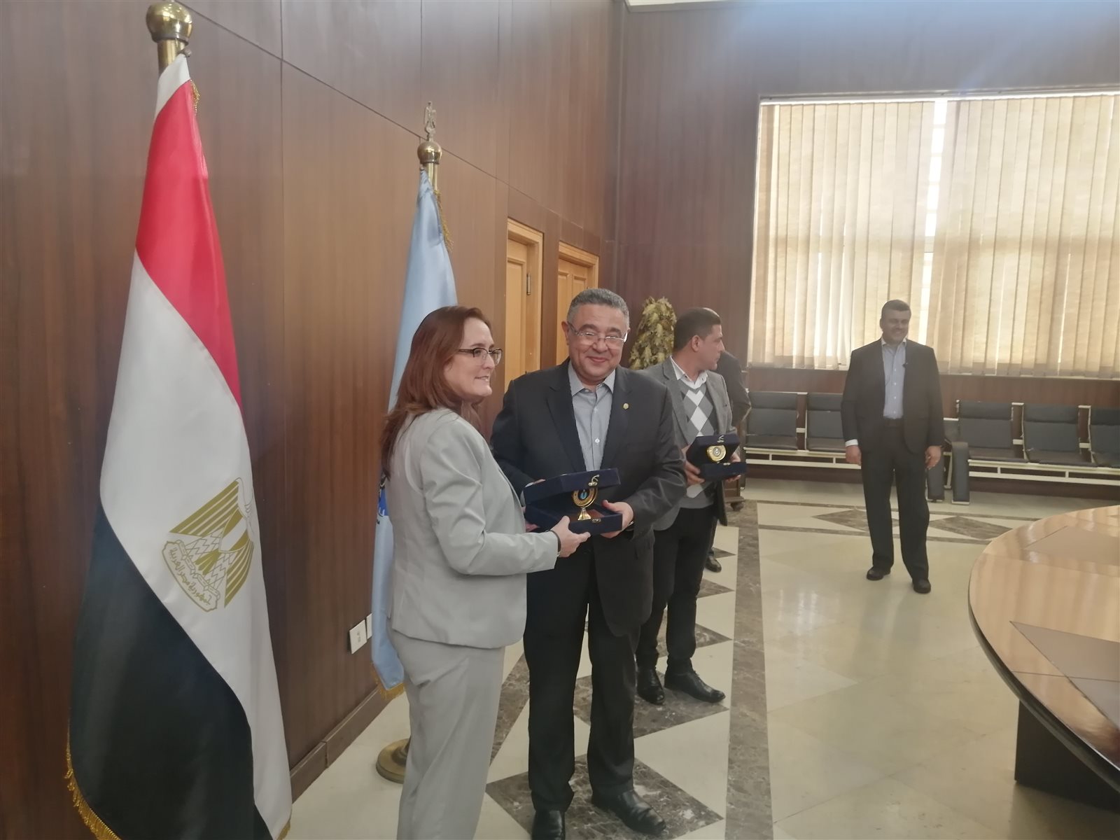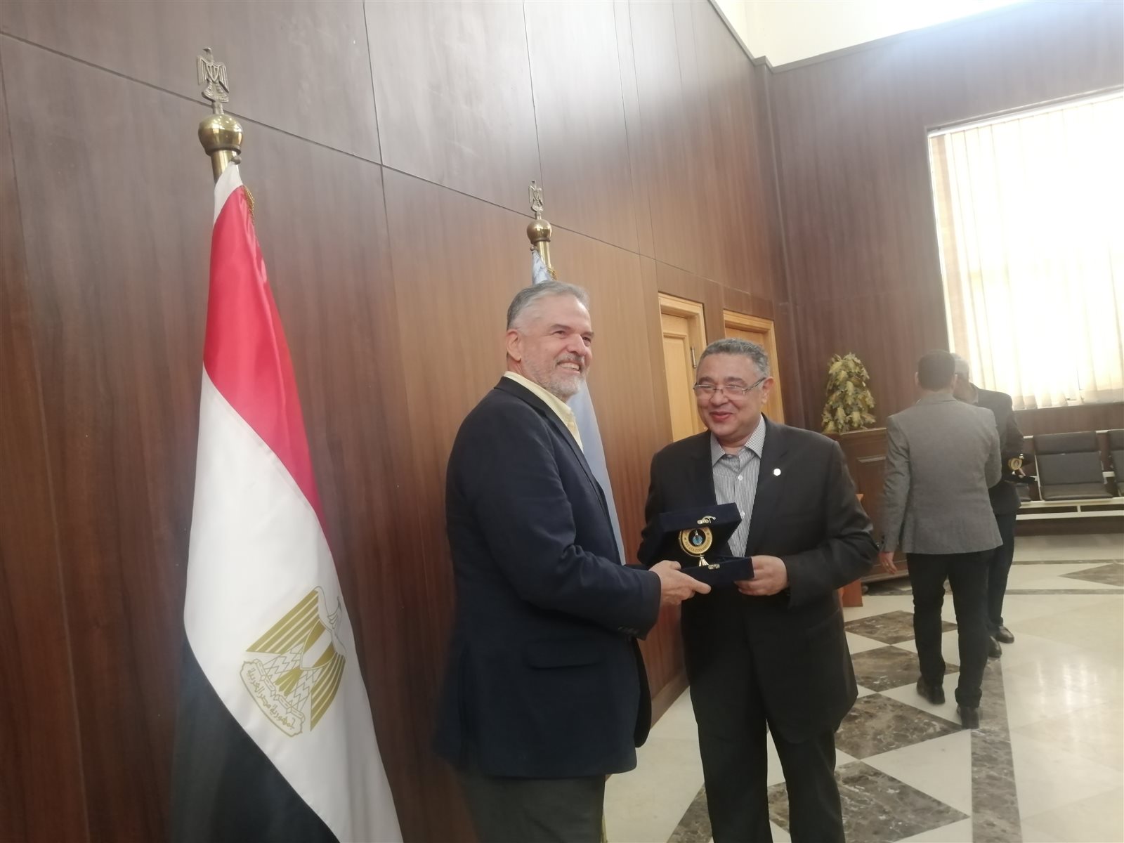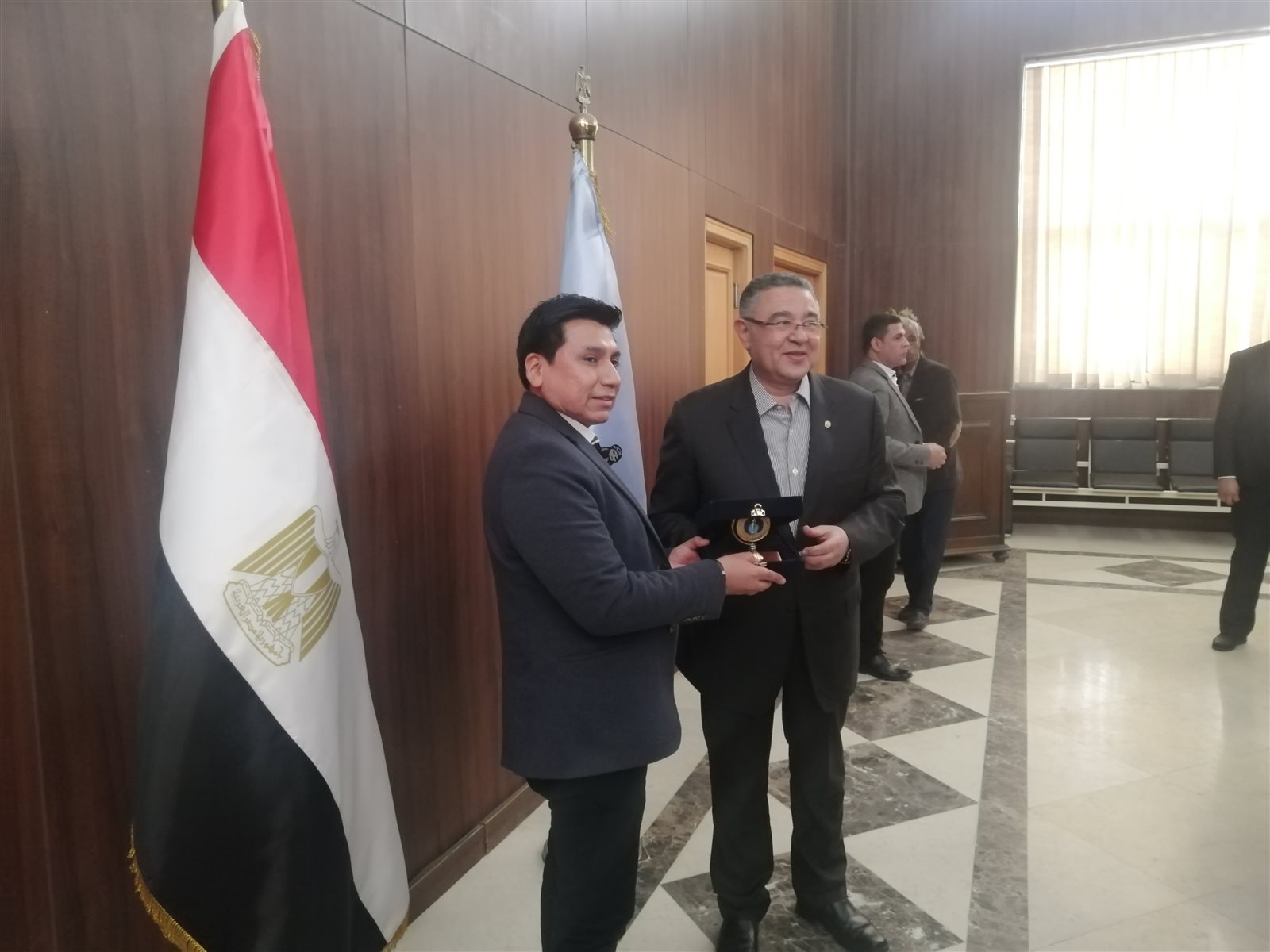 تبادل اللواء عمرو حنفي محافظ البحر الاحمر، و١٣ سفيرا من أمريكا اللاتينية الدروع التذكارية عقب انتهاء المؤتمر الذي عقد اليوم الخميس لتعزيز السياحة داخل البحر الأحمر.