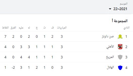 ويتواجد صن داونز الجنوب إفريقي في قمة ترتيب المجموعة الأولى برصيد 7 نقاط حصدها من الفوز على الهلال السوداني 1-0 في الجولة الأولى، ثم التعادل مع المريخ سلبيا ثم الفوز على الأهلي في القاهرة بهدفٍ دون رد، فيما يتذيل الهلال ترتيب المجموعة بنقطة وحيدة، جمعها من التعادل سلبيًا على ملعبه مع الأهلي، والخسارة من صن داونز والمريخ.