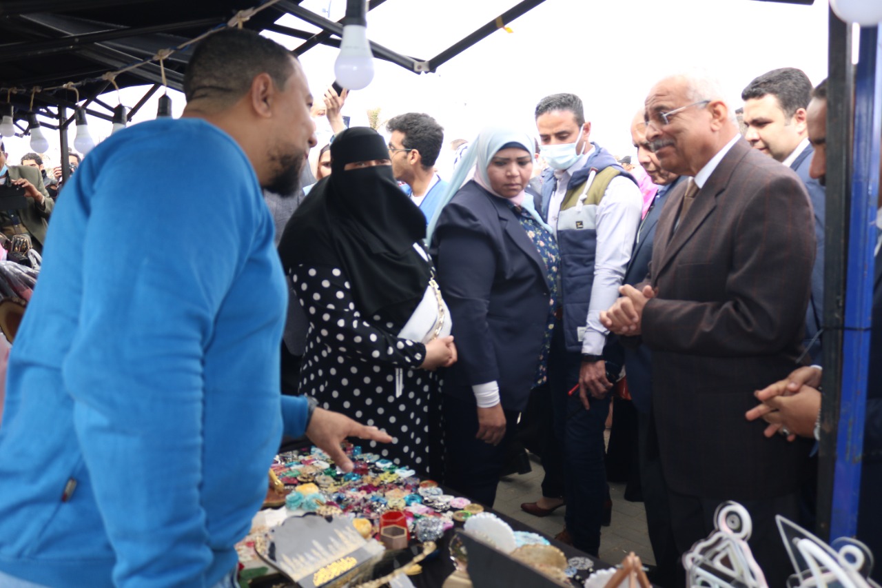 وخلال الافتتاح أجرى محافظ السويس جولة على عدد من العارضين والبالغ عددهم ٢٤٥ والذى ضم حرف يدوية وعرض منتجات متنوعة بأسعار مخفضة.