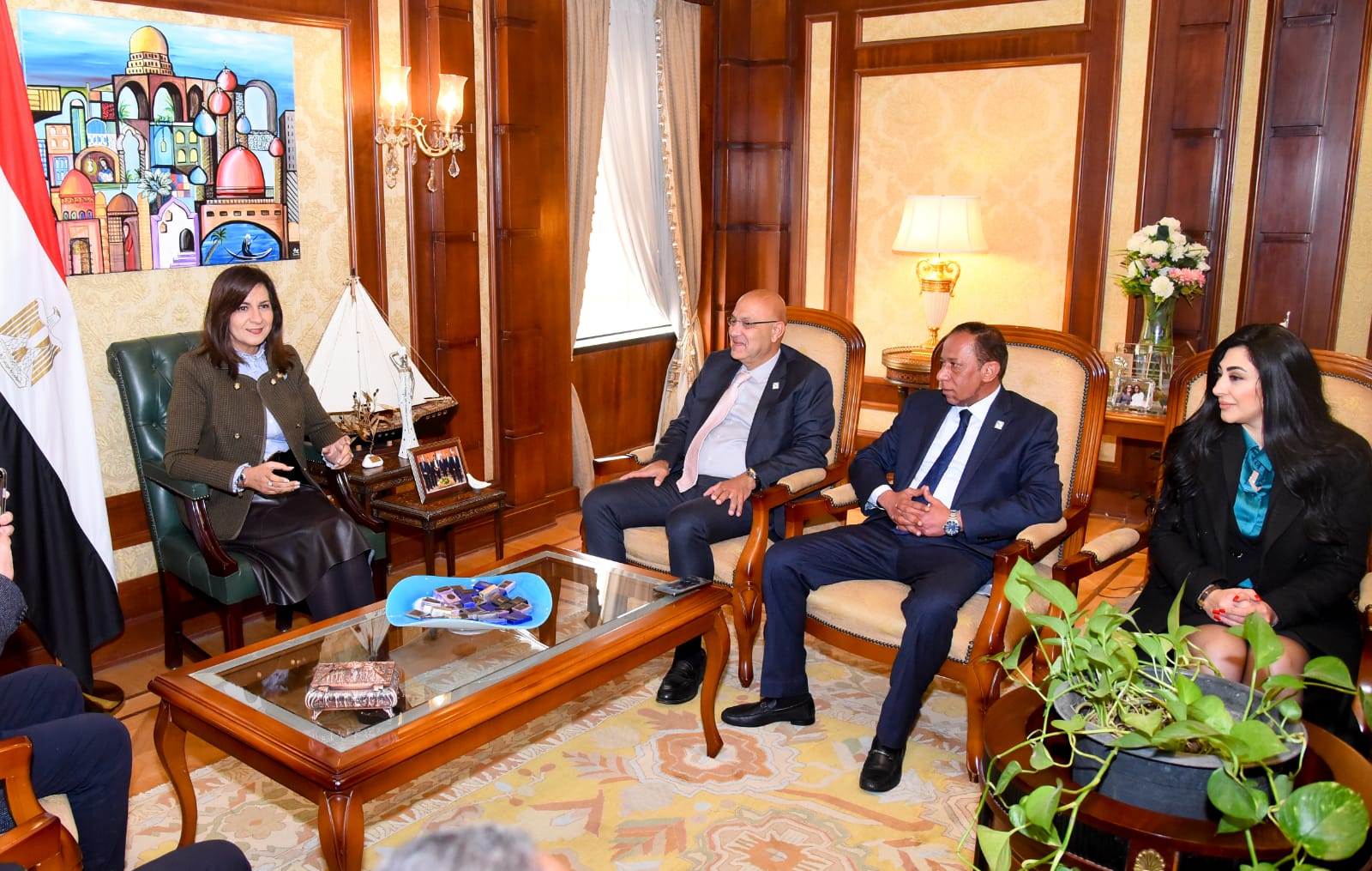 استقبلت السفيرة نبيلة مكرم عبد الشهيد، وزيرة الدولة للهجرة وشئون المصريين بالخارج، كريم بطرس، أحد مؤسسي شركة "طيبة سكيب" المصرية في كندا المتخصصة في تنظيم المعارض الدولية، هذا إلى جانب وفد من كبار المطورين العقاريين في مصر.