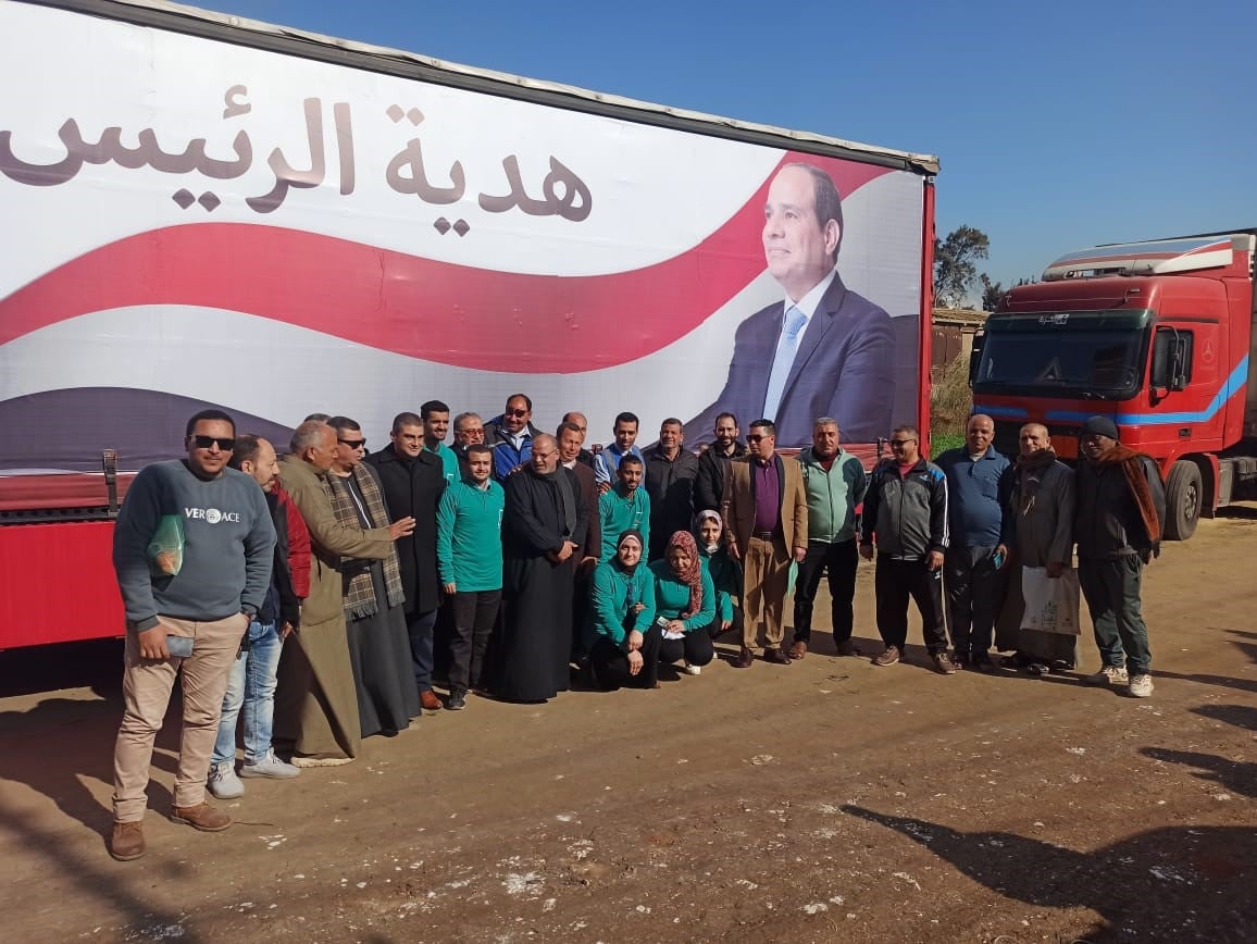 ووصول ٦ شاحنات تحمل ١٢ ألف كرتونة لمركز قطور، وفى الطريق لمركز بسيون أيضًا ٦ شاحنات تحمل ١٢ ألف كرتونة مواد غذائية.