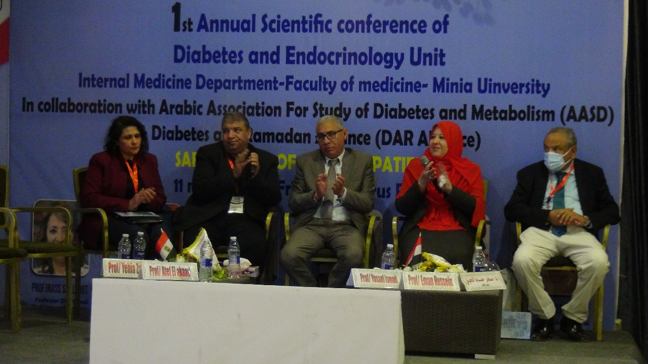 عقدت وحدة الغدد الصماء والسكر بكلية الطب جامعة المنيا برعاية من الدكتور مصطفى عبد النبي، رئيس الجامعة، مؤتمرها العلمي الأول بالتعاون مع قسم الباطنة العامة بذات الكلية، وبالاشتراك مع الجمعية العربية لدراسة أمراض السكر والميتابوليزم وتحالف السكر العالمي في رمضان، تحت عنوان «الصيام الآمن لمريض السكري».